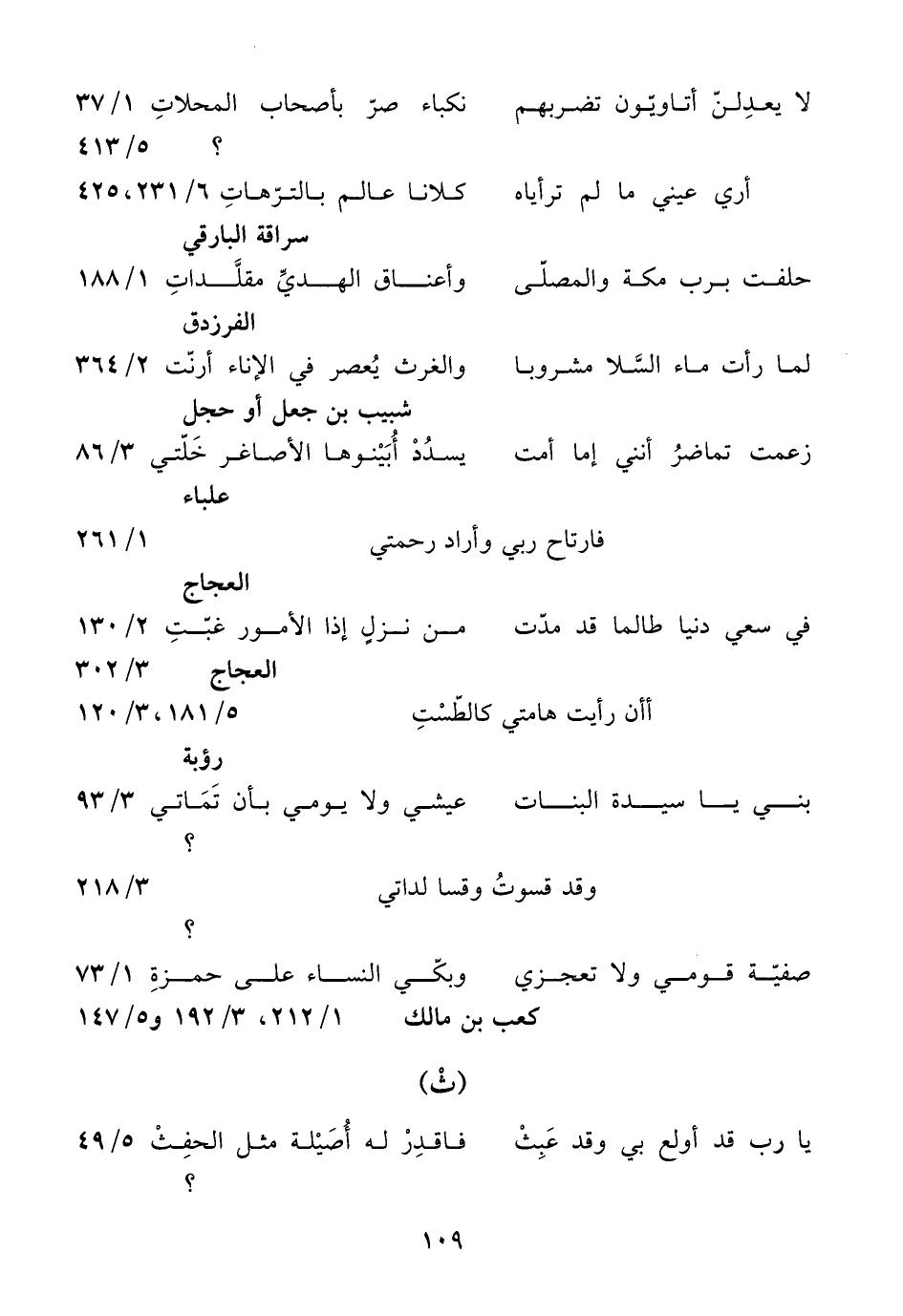 العجاج 3/ 302 أأن رأيت هامتي كالطّست 5/ 181، 3/ 120 رؤبة