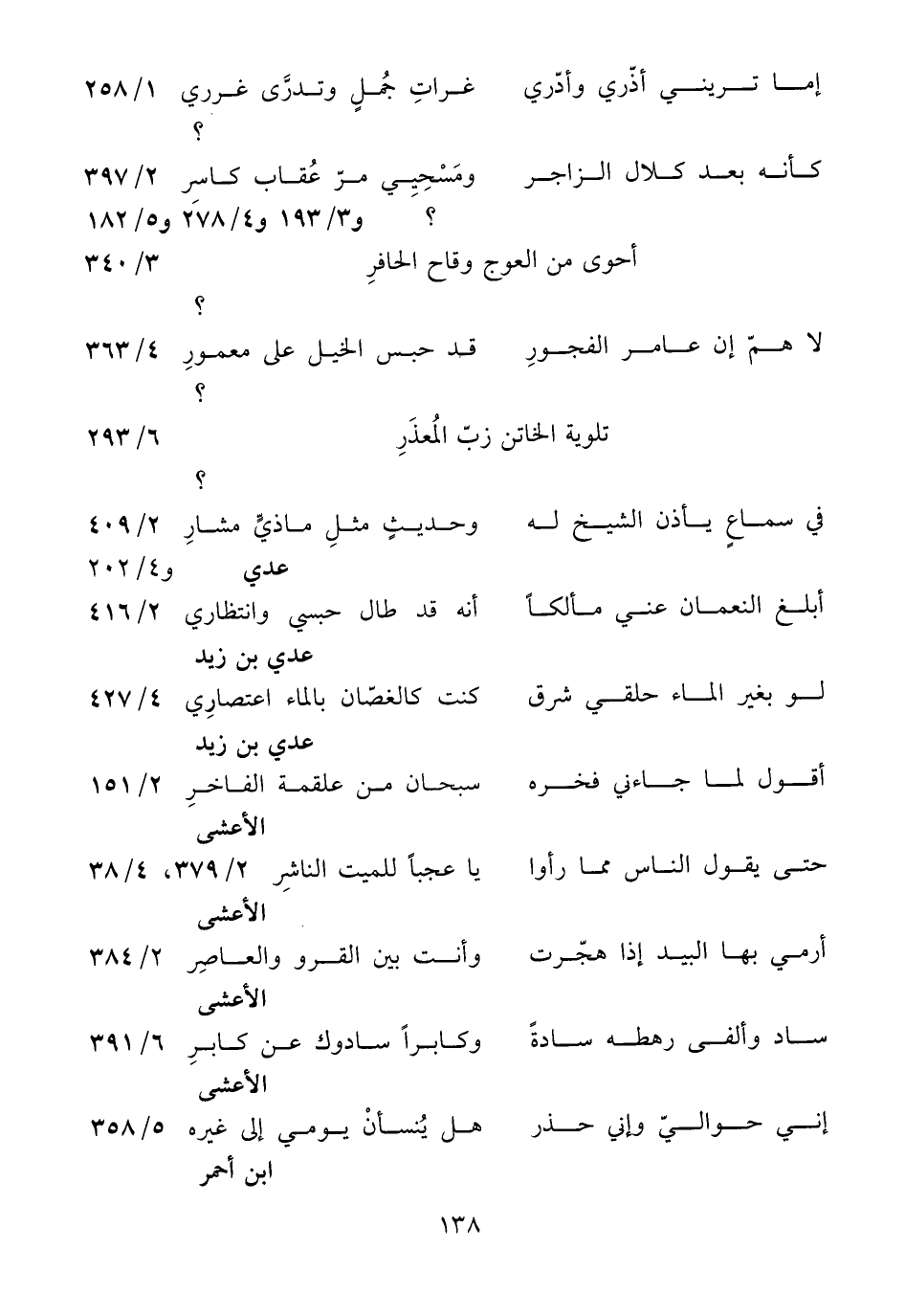 ؟ و 3/ 193 و 4/ 278 و 5/ 182 أحوى من العوج وقاح الحافر 3/ 340؟