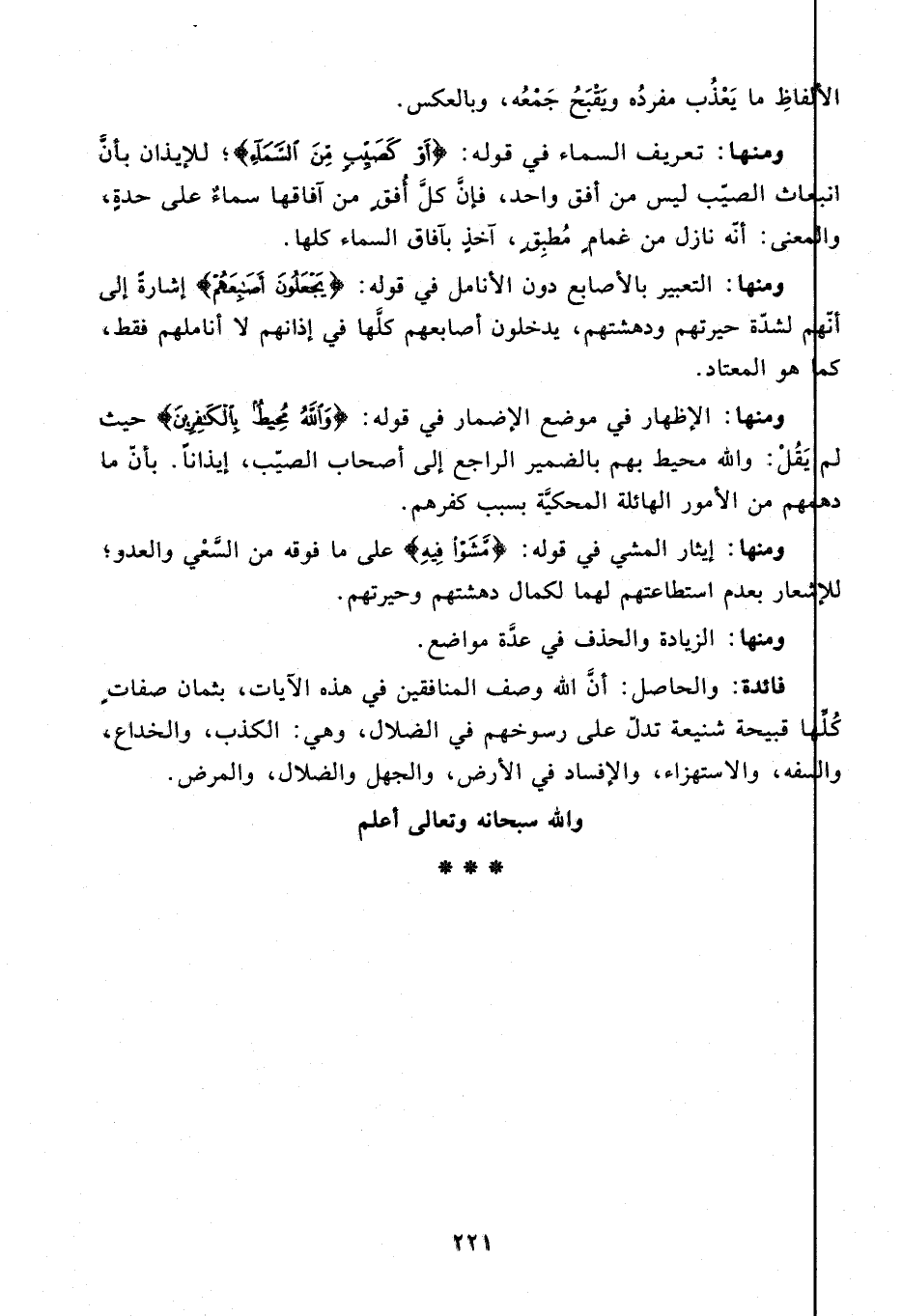 ومنها: التعبير بالأصابع دون الأنامل في قوله: {يَجْعَلُونَ أَصابِعَهُمْ} إشارة إلى أنّهم لشدّة حيرتهم ودهشتهم، يدخلون أصابعهم كلّها في إذانهم لا أناملهم فقط، كما هو المعتاد.