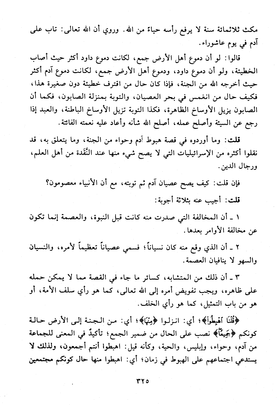 قلت: وما أوردوه في قصة هبوط آدم وحواء من الجنة، وما يتعلق به، قد نقلوا أكثره من الإسرائيليات التي لا يصح شيء منها عند النّقدة من أهل العلم، ورجال الدين.