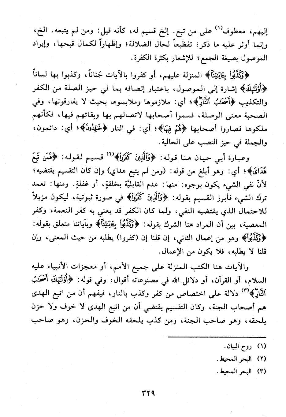 والآيات هنا الكتب المنزلة على جميع الأمم، أو معجزات الأنبياء عليه السلام، أو القرآن، أو دلائل الله في مصنوعاته أقوال، وفي قوله: {أُولئِكَ أَصْحابُ النَّارِ} (¬3) دلالة على اختصاص من كفر وكذب بالنار، فيفهم أن من اتبع الهدى هم أصحاب الجنة، وكان التقسيم يقتضي أن من اتبع الهدى لا خوف ولا حزن يلحقه، وهو صاحب الجنة، ومن كذب يلحقه الخوف والحزن، وهو صاحب