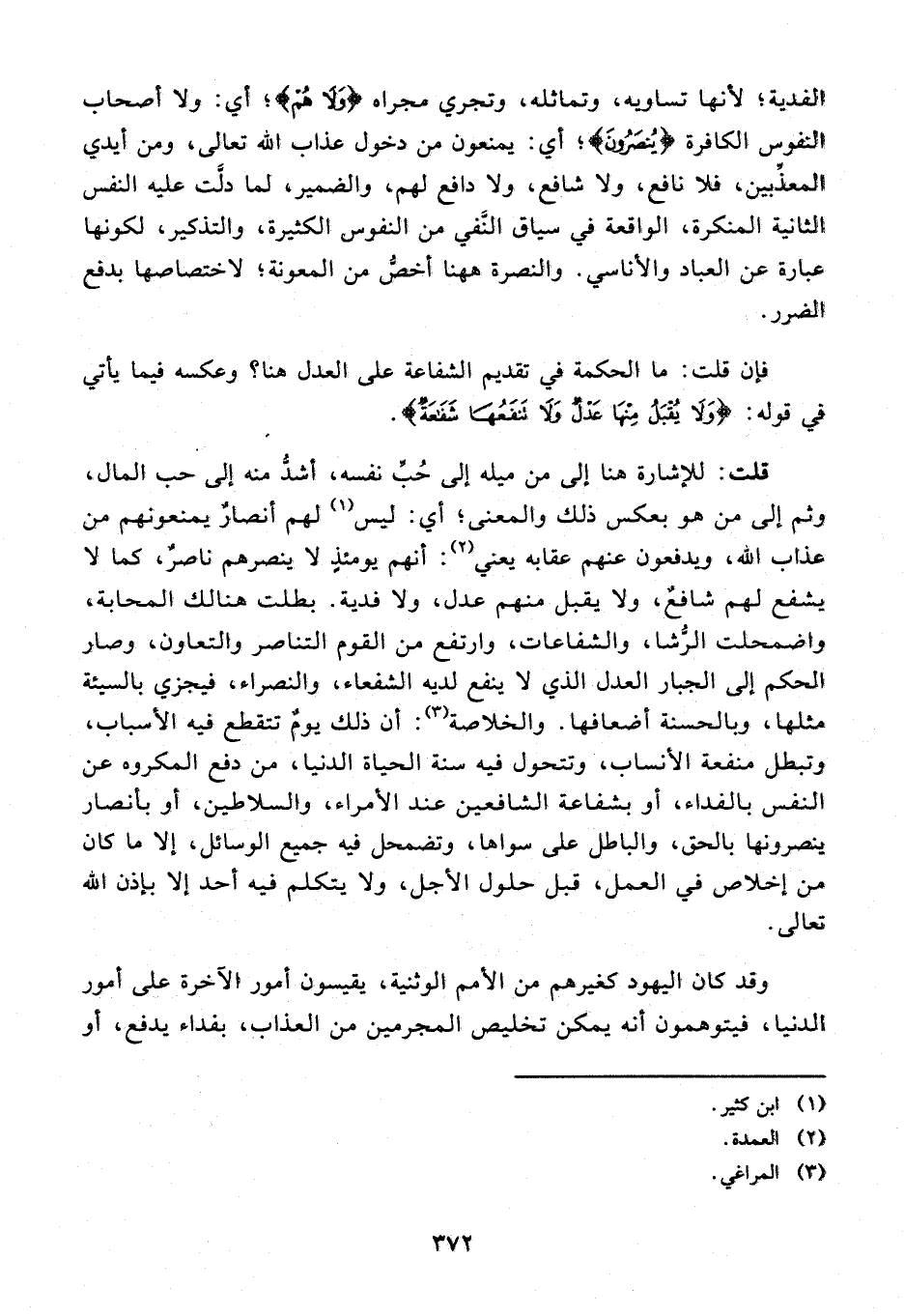 وقد كان اليهود كغيرهم من الأمم الوثنية، يقيسون أمور الآخرة على أمور الدنيا، فيتوهمون أنه يمكن تخليص المجرمين من العذاب، بفداء يدفع، أو