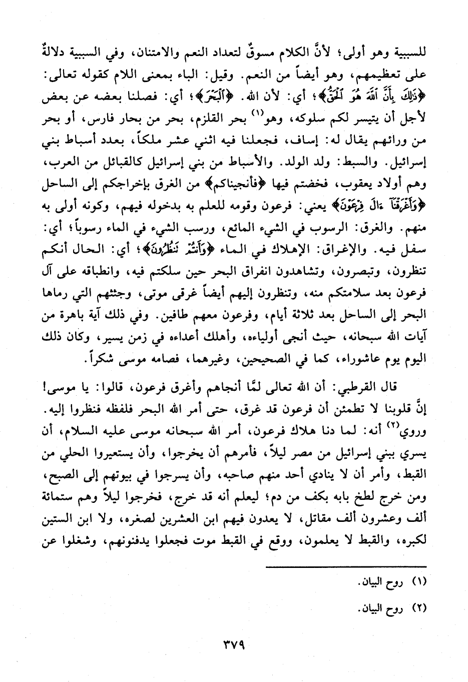 للسببية وهو أولى؛ لأنّ الكلام مسوق لتعداد النعم والامتنان، وفي السببية دلالة على تعظيمهم، وهو أيضا من النعم. وقيل: الباء بمعنى اللام كقوله تعالى: {ذلِكَ بِأَنَّ اللَّهَ هُوَ الْحَقُّ}؛ أي: لأن الله. {الْبَحْرَ}؛ أي: فصلنا بعضه عن بعض لأجل أن يتيسر لكم سلوكه، وهو (¬1) بحر القلزم، بحر من بحار فارس، أو بحر من ورائهم يقال له: إساف، فجعلنا فيه اثني عشر ملكا، بعدد أسباط بني إسرائيل. والسبط: ولد الولد. والأسباط من بني إسرائيل كالقبائل من العرب، وهم أولاد يعقوب، فخضتم فيها {فَأَنْجَيْناكُمْ} من الغرق بإخراجكم إلى الساحل {وَأَغْرَقْنا آلَ فِرْعَوْنَ} يعني: فرعون وقومه للعلم به بدخوله فيهم، وكونه أولى به منهم. والغرق: الرسوب في الشيء المائع، ورسب الشيء في الماء رسوبا؛ أي: سفل فيه. والإغراق: الإهلاك في الماء {وَأَنْتُمْ تَنْظُرُونَ}؛ أي: الحال أنكم تنظرون، وتبصرون، وتشاهدون انفراق البحر حين سلكتم فيه، وانطباقه على آل فرعون بعد سلامتكم منه، وتنظرون إليهم أيضا غرقى موتى، وجثثهم التي رماها البحر إلى الساحل بعد ثلاثة أيام، وفرعون معهم طافين. وفي ذلك آية باهرة من آيات الله سبحانه، حيث أنجى أولياءه، وأهلك أعداءه في زمن يسير، وكان ذلك اليوم يوم عاشوراء، كما في الصحيحين، وغيرهما، فصامه موسى شكرا.