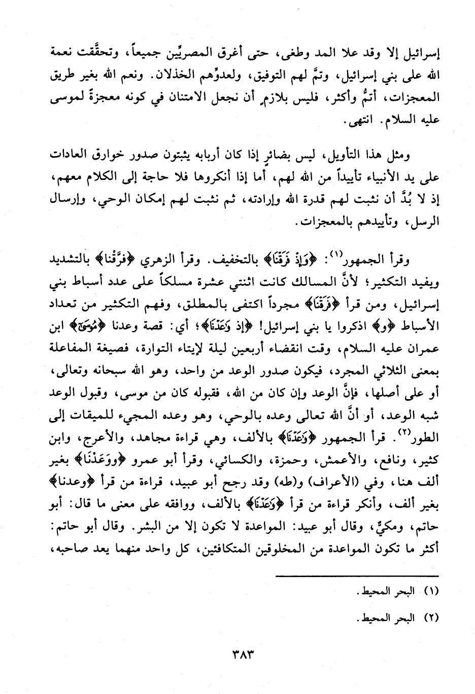 إسرائيل إلا وقد علا المد وطغى، حتى أغرق المصريّين جميعا، وتحقّقت نعمة الله على بني إسرائيل، وتمّ لهم التوفيق، ولعدوّهم الخذلان. ونعم الله بغير طريق المعجزات، أتمّ وأكثر، فليس بلازم أن نجعل الامتنان في كونه معجزة لموسى عليه السلام. انتهى.