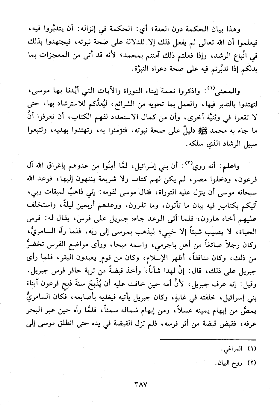 والمعنى (¬1): واذكروا نعمة إيتاء التوراة والآيات التي أيّدنا بها موسى، لتهتدوا بالتدبر فيها، والعمل بما تحويه من الشرائع، ليعدّكم للاسترشاد بها، حتى لا تقعوا في وثنيّة أخرى، وأن من كمال الاستعداد لفهم الكتاب، أن تعرفوا أنّ ما جاء به محمد صلّى الله عليه وسلّم دليل على صحة نبوته، فتؤمنوا به، وتهتدوا بهديه، وتتبعوا سبيل الرشاد الذي سلكه.