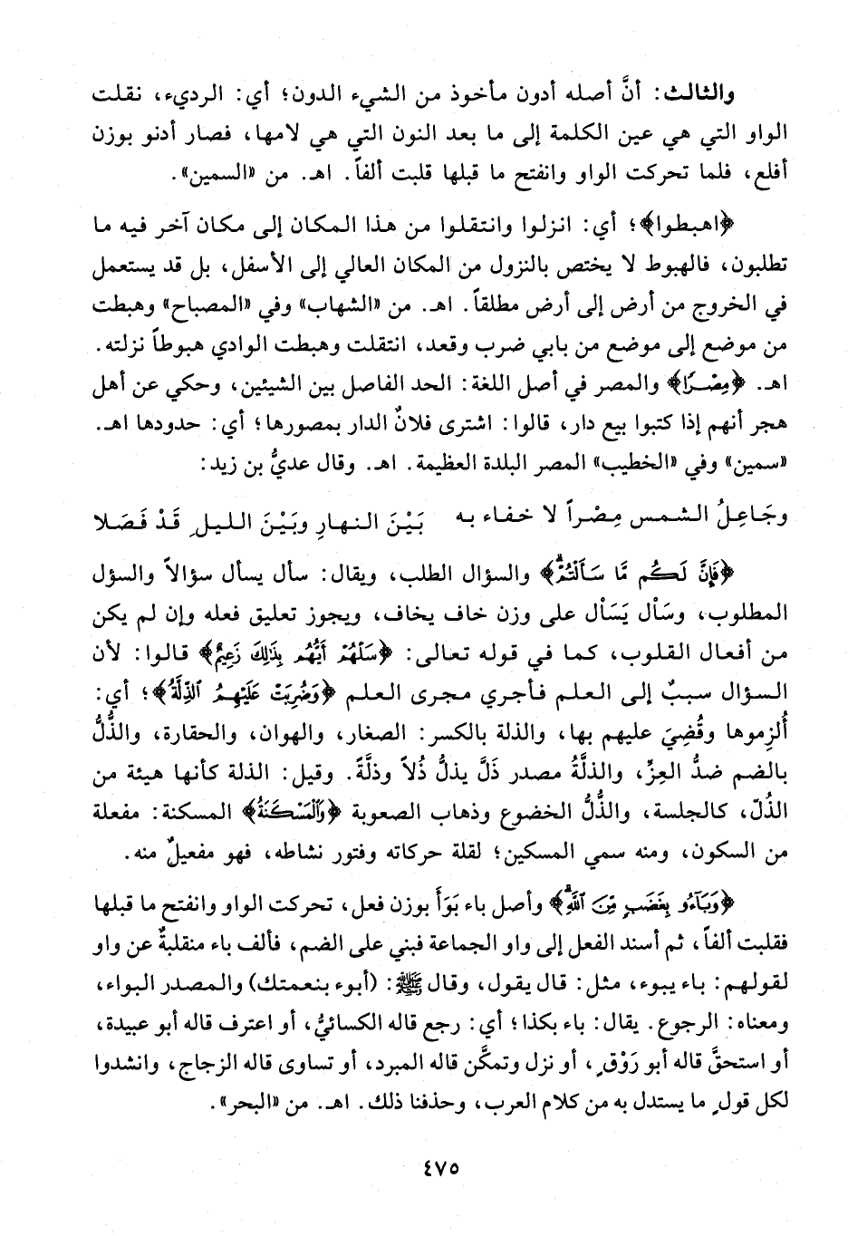 {وَباؤُ بِغَضَبٍ مِنَ اللَّهِ} وأصل باء بوأ بوزن فعل، تحركت الواو وانفتح ما قبلها فقلبت ألفا، ثم أسند الفعل إلى واو الجماعة فبني على الضم، فألف باء منقلبة عن واو لقولهم: باء يبوء، مثل: قال يقول، وقال صلّى الله عليه وسلّم: (أبوء بنعمتك) والمصدر البواء، ومعناه: الرجوع. يقال: باء بكذا؛ أي: رجع قاله الكسائيّ، أو اعترف قاله أبو عبيدة، أو استحقّ قاله أبو روق، أو نزل وتمكّن قاله المبرد، أو تساوى قاله الزجاج، وانشدوا لكل قول ما يستدل به من كلام العرب، وحذفنا ذلك. اه. من «البحر».