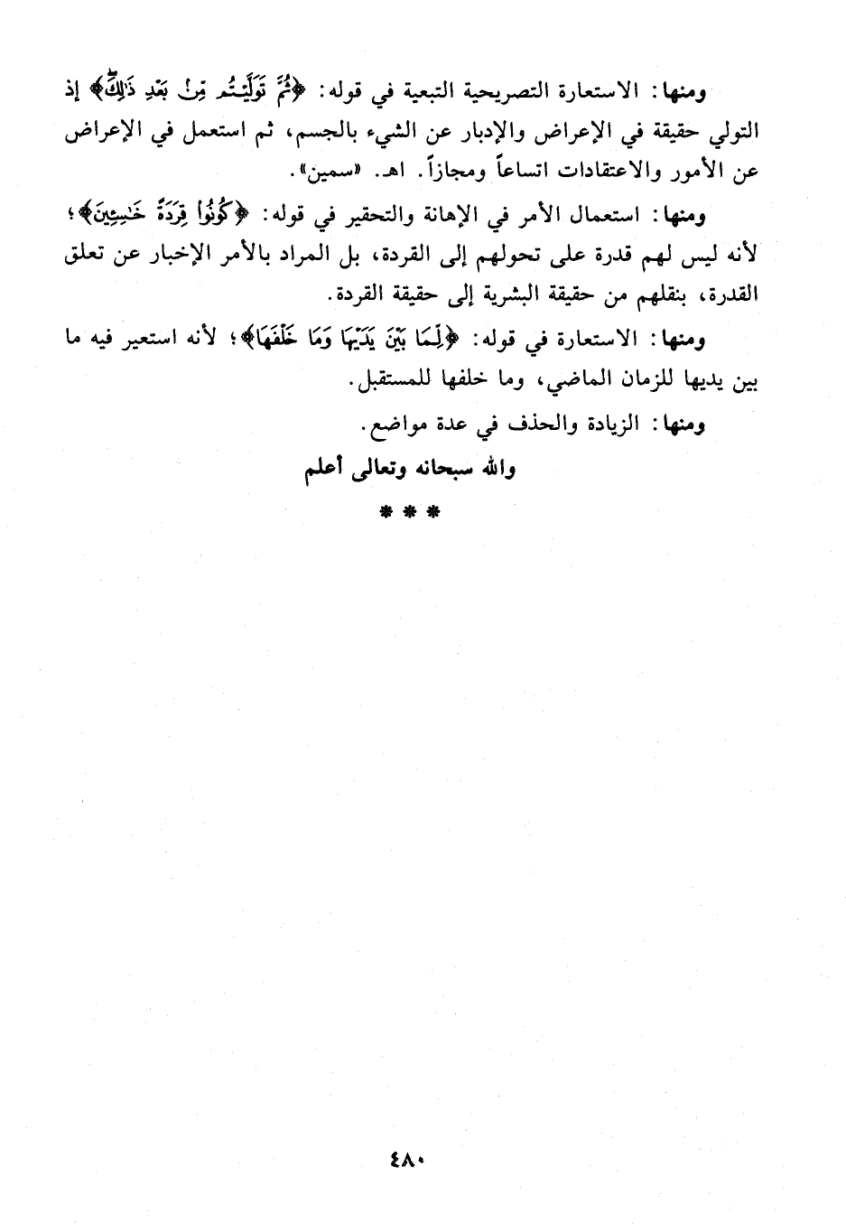 ومنها: الاستعارة التصريحية التبعية في قوله: {ثُمَّ تَوَلَّيْتُمْ مِنْ بَعْدِ ذلِكَ} إذ التولي حقيقة في الإعراض والإدبار عن الشيء بالجسم، ثم استعمل في الإعراض عن الأمور والاعتقادات اتساعا ومجازا. اه. «سمين».