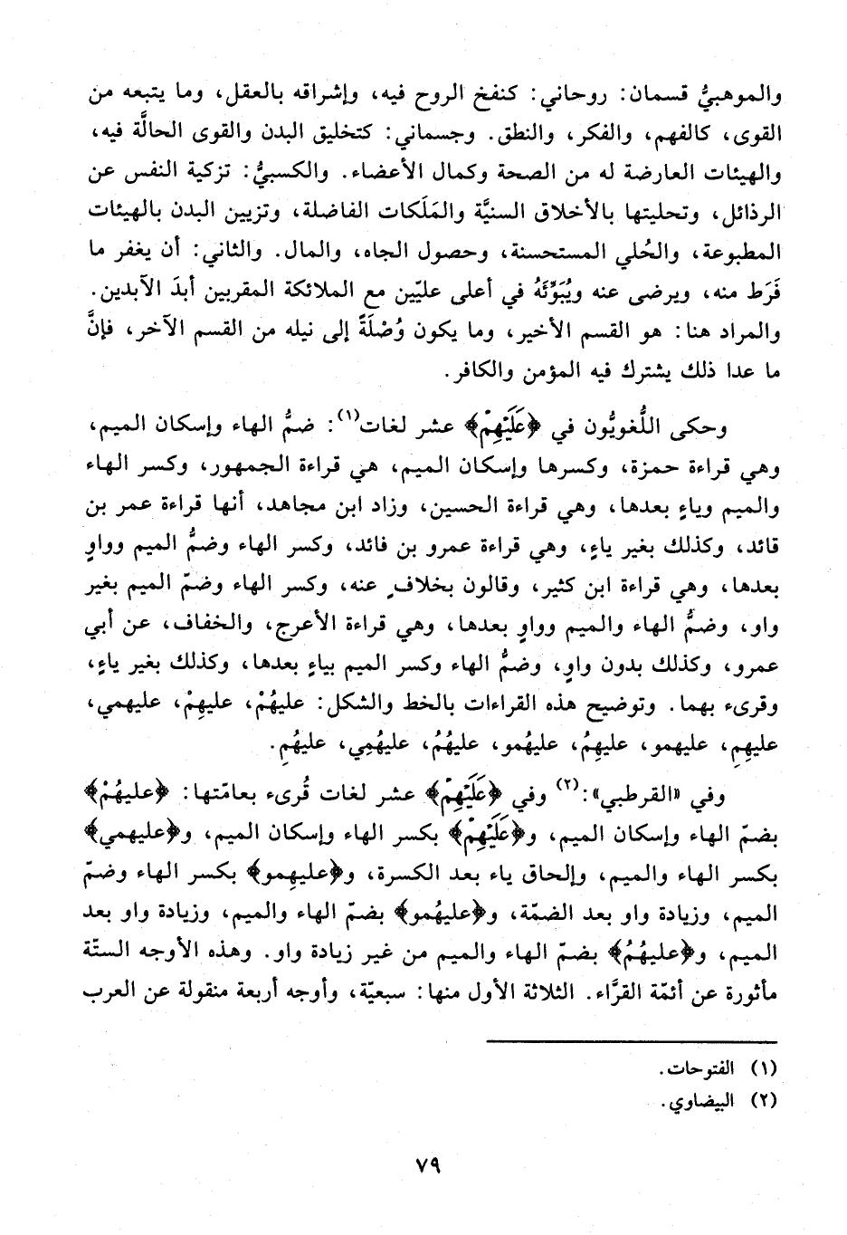 وفي «القرطبي»: (¬2) وفي {عَلَيْهِمْ} عشر لغات قرىء بعامّتها: {عليهم} بضمّ الهاء وإسكان الميم، و {عَلَيْهِمْ} بكسر الهاء وإسكان الميم، و {عليهمي} بكسر الهاء والميم، وإلحاق ياء بعد الكسرة، و {عليهمو} بكسر الهاء وضمّ الميم، وزيادة واو بعد الضمّة، و {عليهمو} بضمّ الهاء والميم، وزيادة واو بعد الميم، و {عليهم} بضمّ الهاء والميم من غير زيادة واو. وهذه الأوجه الستّة مأثورة عن أئمّة القرّاء. الثلاثة الأول منها: سبعيّة، وأوجه أربعة منقولة عن العرب