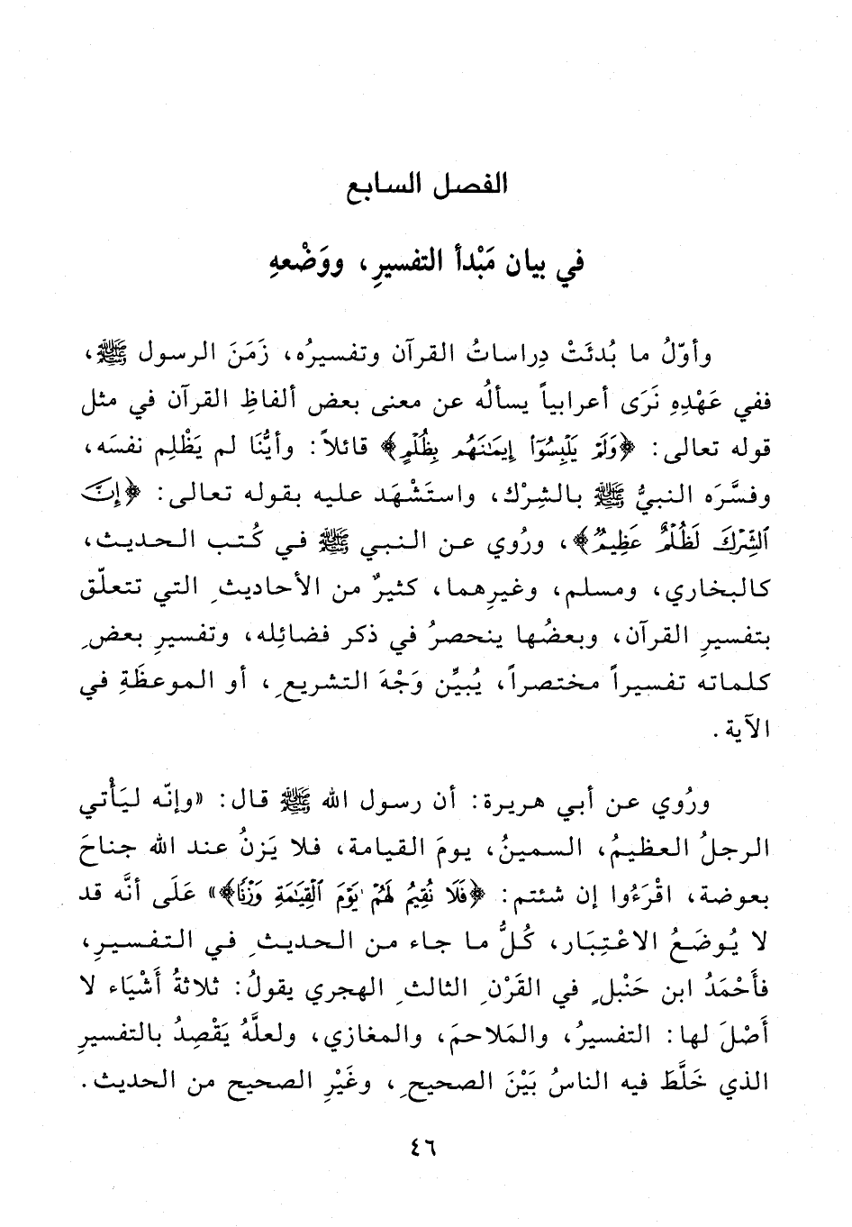 الفصل السابع في بيان مبدأ التفسير، ووضعه
