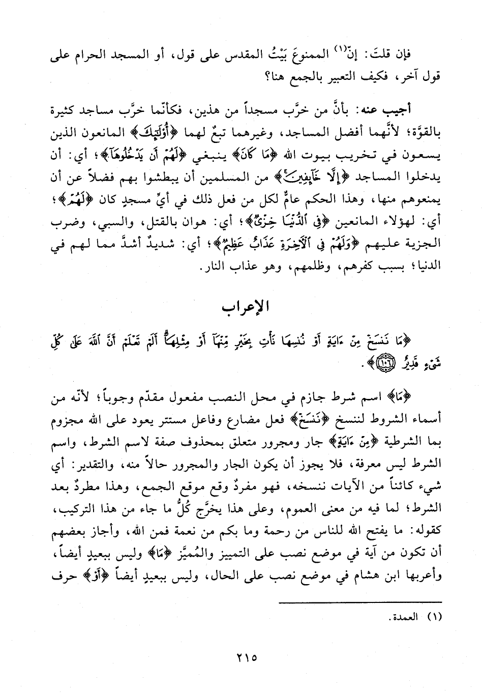 {مَا نَنْسَخْ مِنْ آيَةٍ أَوْ نُنْسِهَا نَأْتِ بِخَيْرٍ مِنْهَا أَوْ مِثْلِهَا أَلَمْ تَعْلَمْ أَنَّ اللَّهَ عَلَى كُلِّ شَيْءٍ قَدِيرٌ (106)}.