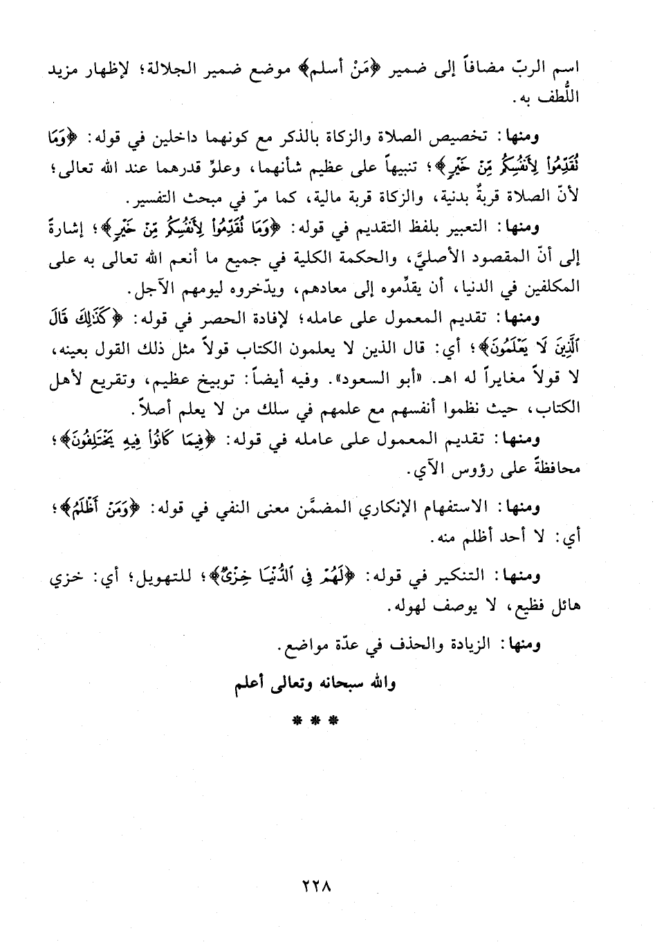 ومنها: تخصيص الصلاة والزكاة بالذكر مع كونهما داخلين في قوله: {وَمَا تُقَدِّمُوا لِأَنْفُسِكُمْ مِنْ خَيْرٍ}؛ تنبيهًا على عظيم شأنهما، وعلوِّ قدرهما عند الله تعالى؛ لأنّ الصلاة قربةٌ بدنية، والزكاة قربة مالية، كما مرّ في مبحث التفسير.