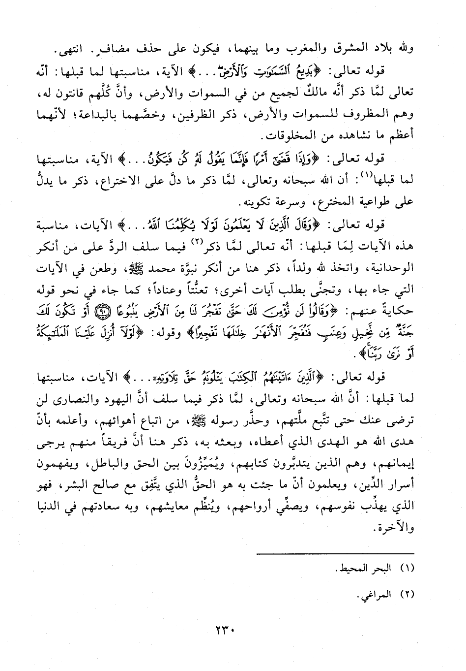 ولله بلاد المشرق والمغرب وما بينهما، فيكون على حذف مضافٍ. انتهى.