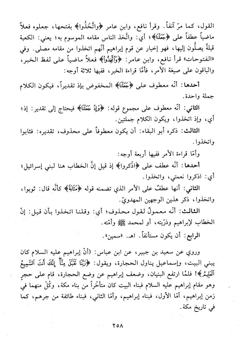 الثاني: أنها عطفٌ على الأمر الذي تضمنه قوله {مَثَابَةً} كأنَّه قال: ثوبوا، واتخذوا، ذكر هذين الوجهين المهدويّ.