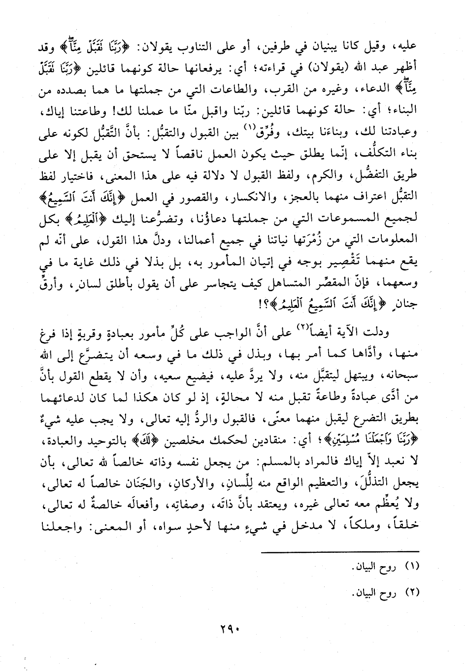 ودلت الآية أيضًا (¬2) على أنَّ الواجب على كُلِّ مأمور بعبادةٍ وقربةٍ إذا فرغ منها، وأدَّاها كما أمر بها، وبذل في ذلك ما في وسعه أن يتضرَّع إلى الله سبحانه، ويبتهل ليتقبَّل منه، ولا يردَّ عليه، فيضيع سعيه، وأن لا يقطع القول بأنَّ من أدَّى عبادةً وطاعةً تقبل منه لا محالةٍ، إذ لو كان هكذا لما كان لدعائهما بطريق التضرع ليقبل منهما معنًى، فالقبول والردُّ إليه تعالى، ولا يجب عليه شيءٌ