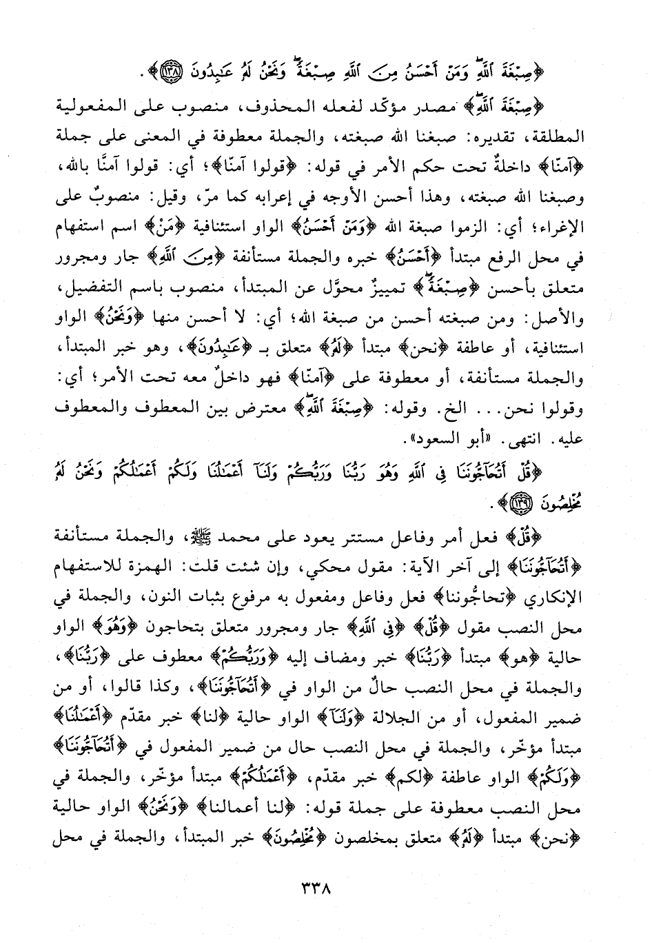 {صِبْغَةَ اللَّهِ وَمَنْ أَحْسَنُ مِنَ اللَّهِ صِبْغَةً وَنَحْنُ لَهُ عَابِدُونَ (138)}.