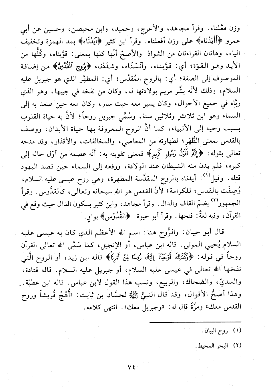 وهذا أصحُّ الأقوال، وقد قال النبيُّ - صلى الله عليه وسلم - لحسَّان بن ثابت: "أُهْجُ قُريشًا وروح القدس معك" ومرَّةً قال له: "وجبريل معك". انتهى كلامه.
