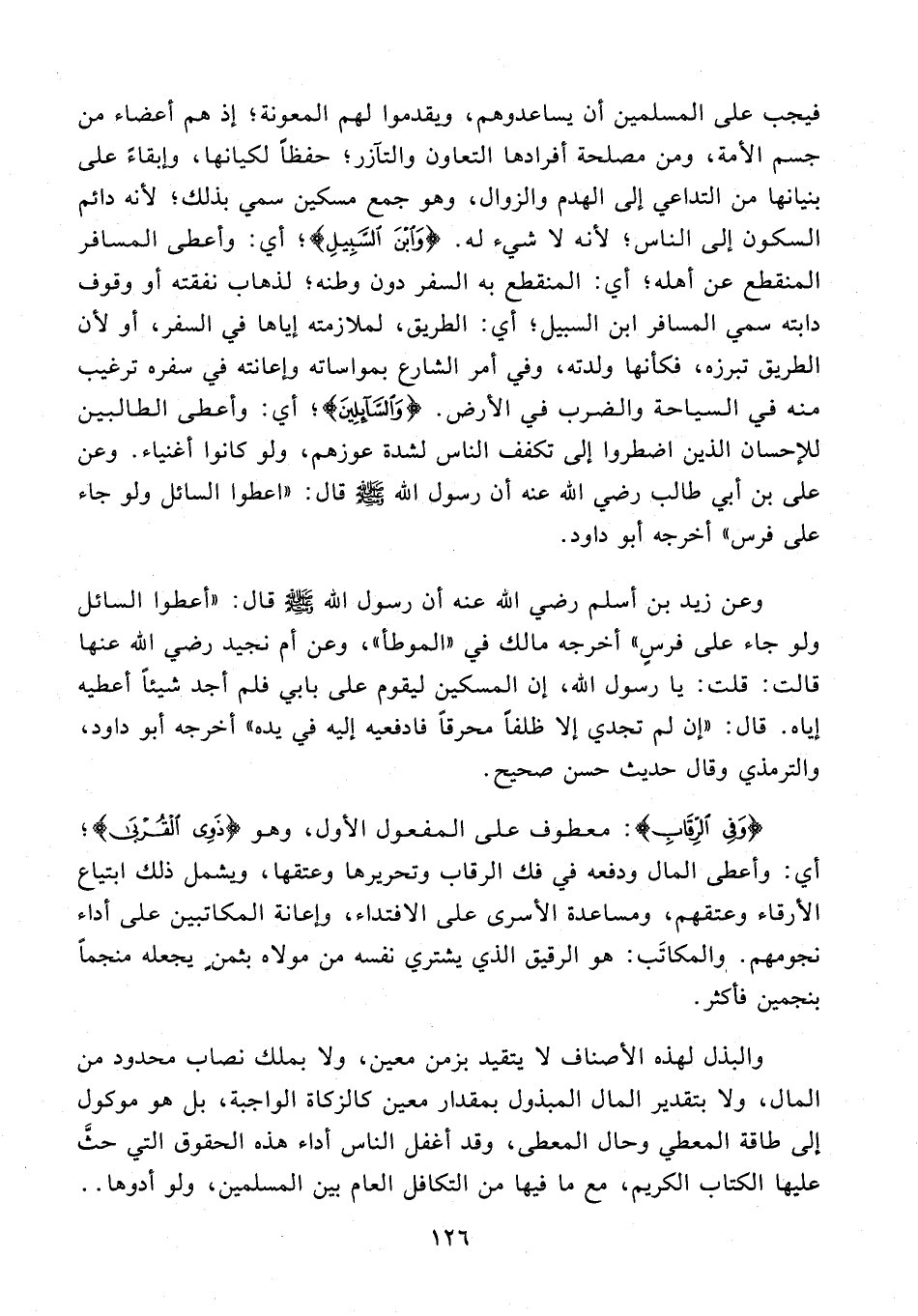 والبذل لهذه الأصناف لا يتقيد بزمن معين، ولا بملك نصاب محدود من المال، ولا بتقدير المال المبذول بمقدار معين كالزكاة الواجبة، بل هو موكول إلى طاقة المعطي وحال المعطى، وقد أغفل الناس أداء هذه الحقوق التي حثَّ عليها الكتاب الكريم، مع ما فيها من التكافل العام بين المسلمين، ولو أدوها ..