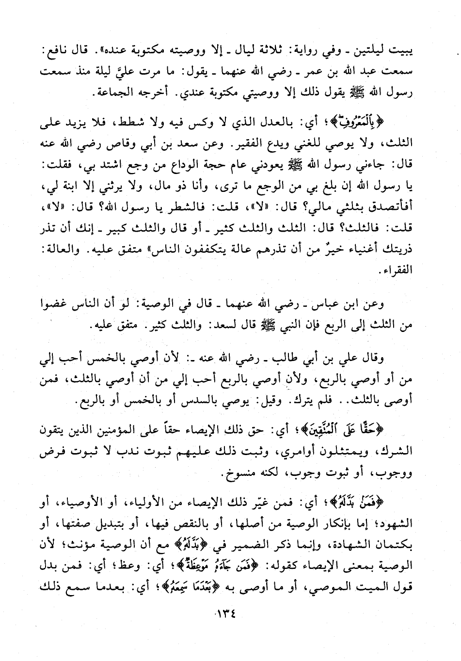 وعن ابن عباس - رضي الله عنهما - قال في الوصية: لو أن الناس غضوا من الثلث إلى الربع فإن النبي - صلى الله عليه وسلم - قال لسعد: والثلث كثير. متفق عليه.