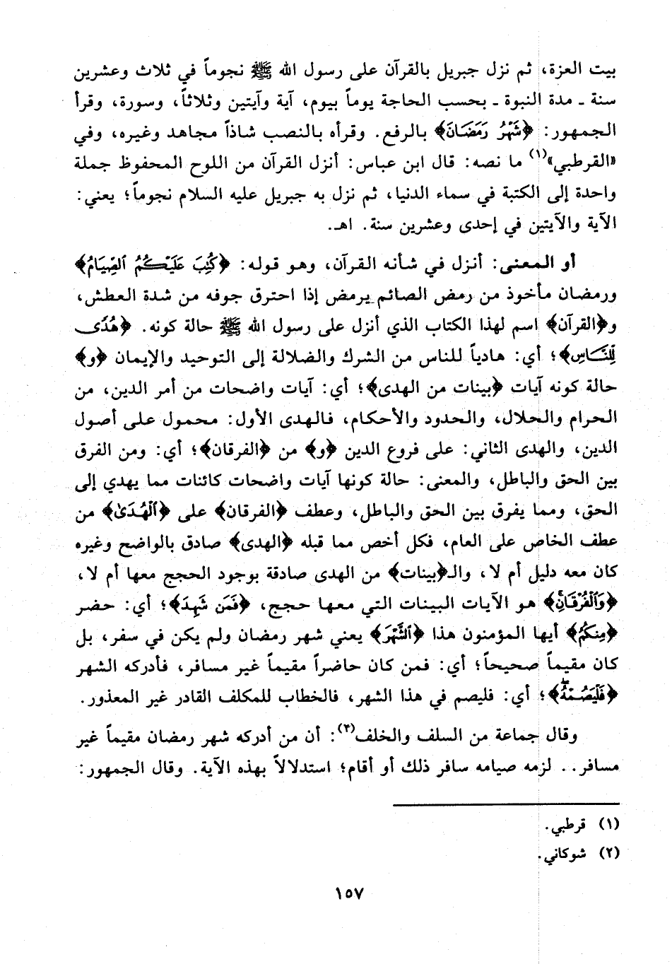 بيت العزة، ثم نزل جبريل بالقرآن على رسول الله - صلى الله عليه وسلم - نجومًا في ثلاث وعشرين سنة - مدة النبوة - بحسب الحاجة يومًا بيوم، آية وآيتين وثلاثًا، وسورة، وقرأ الجمهور: {شَهْرُ رَمَضَانَ} بالرفع. وقرأه بالنصب شاذًا مجاهد وغيره، وفي "القرطبي" (¬1) ما نصه: قال ابن عباس: أنزل القرآن من اللوح المحفوظ جملة واحدة إلى الكتبة في سماء الدنيا، ثم نزل به جبريل عليه السلام نجومًا؛ يعني: الآية والآيتين في إحدى وعشرين سنة. اهـ.