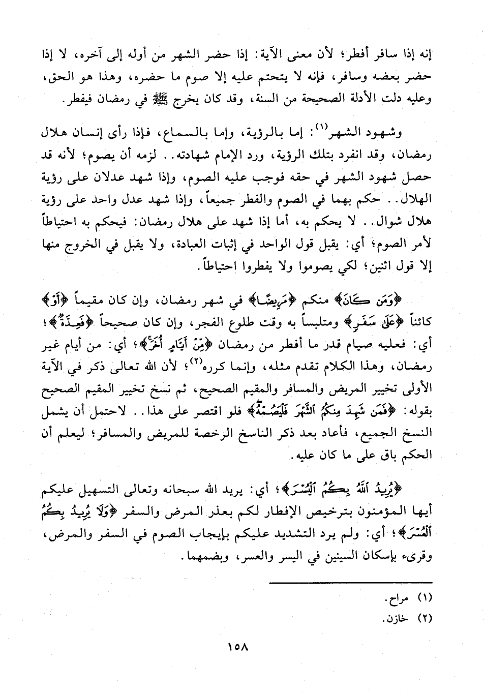 إنه إذا سافر أفطر؛ لأن معنى الآية: إذا حضر الشهر من أوله إلى آخره، لا إذا حضر بعضه وسافر، فإنه لا يتحتم عليه إلا صوم ما حضره، وهذا هو الحق، وعليه دلت الأدلة الصحيحة من السنة، وقد كان يخرج - صلى الله عليه وسلم - في رمضان فيفطر.