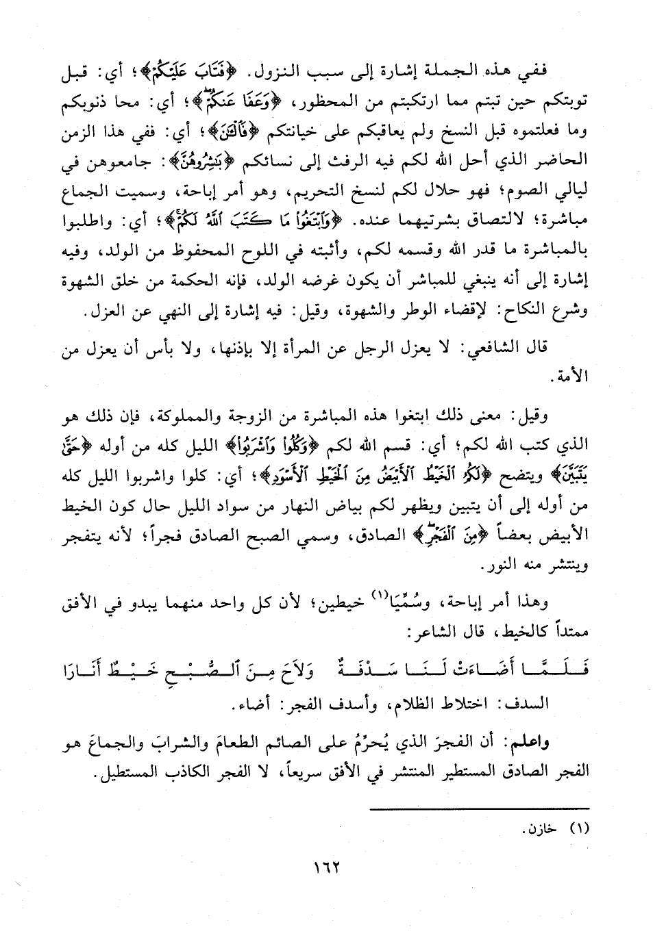 وقيل: معنى ذلك ابتغوا هذه المباشرة من الزوجة والمملوكة، فإن ذلك هو الذي كتب الله لكم؛ أي: قسم الله لكم {وَكُلُوا وَاشْرَبُوا} الليل كله من أوله {حَتَّى يَتَبَيَّنَ} ويتضح {لَكُمُ الْخَيْطُ الْأَبْيَضُ مِنَ الْخَيْطِ الْأَسْوَدِ}؛ أيّ: كلوا واشربوا الليل كله من أوله إلى أن يتبين ويظهر لكم بياض النهار من سواد الليل حال كون الخيط الأبيض بعضًا {مِنَ الْفَجْرِ} الصادق، وسمي الصبح الصادق فجرًا؛ لأنه يتفجر وينتشر منه النور.