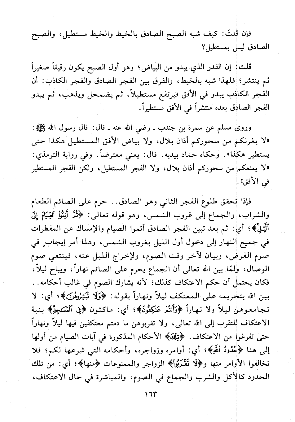 فإن قلتَ: كيف شبه الصبح الصادق بالخيط والخيط مستطيل، والصبح الصادق ليس بمستطيل؟