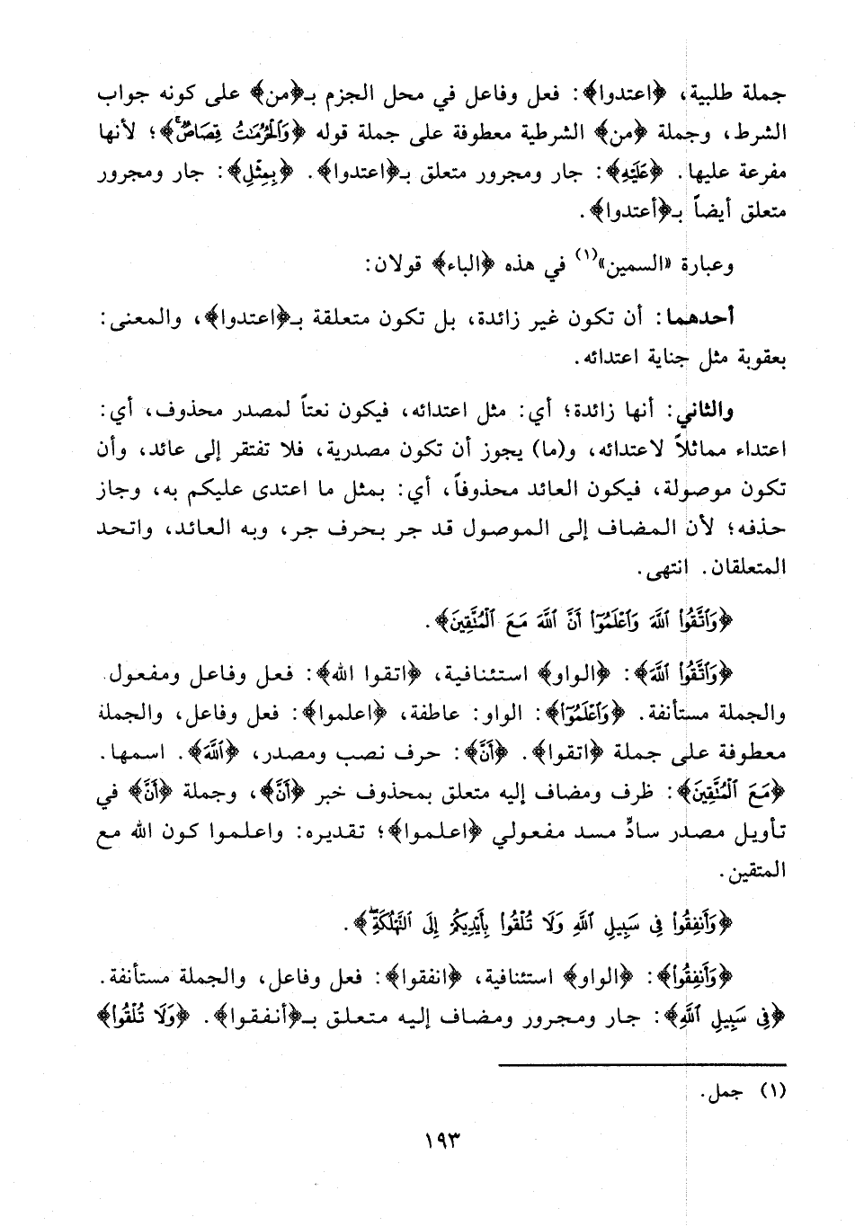 {وَأَنْفِقُوا}: {الواو} استئنافية، {أَنْفِقُوا}: فعل وفاعل، والجملة مستأنفة. {فِي سَبِيلِ اللَّهِ}: جار ومجرور ومضاف إليه متعلق بـ {أنفقوا}. {وَلَا تُلْقُوا}