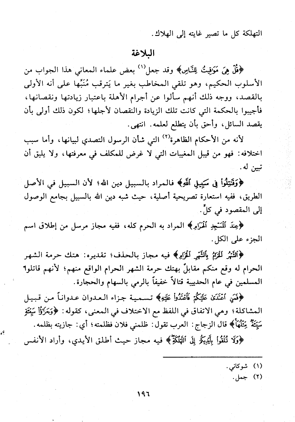 {وَلَا تُلْقُوا بِأَيْدِيكُمْ إِلَى التَّهْلُكَةِ} فيه مجاز حيث أطلق الأيدى، وأراد الأنفس