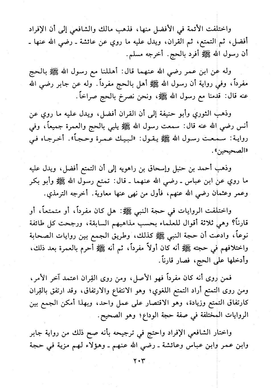 فمن روى أنه كان مفردًا فهو الأصل، ومن روى القِران اعتمد آخر الأمر، ومن روى التمتع أراد التمتع اللغوي، وهو الانتفاع والارتفاق، وقد ارتفق بالقِران كارتفاق التمتع وزيادة، وهو الاقتصار على عمل واحد، وبهذا أمكن الجمع بين الروايات المختلفة في صفة حجة الوداع، وهو الصحيح.