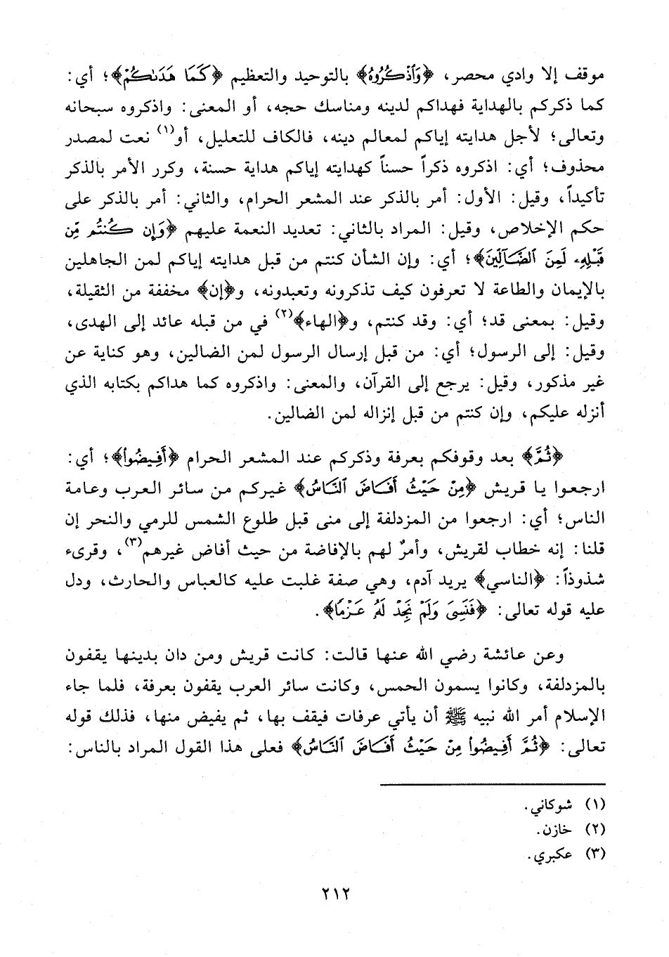 199 - {ثُمَّ} بعد وقوفكم بعرفة وذكركم عند المشعر الحرام {أَفِيضُوا}؛ أي: ارجعوا يا قريش {مِنْ حَيْثُ أَفَاضَ النَّاسُ} غيركم من سائر العرب وعامة الناس؛ أي: ارجعوا من المزدلفة إلى منى قبل طلوع الشمس للرمي والنحر إن قلنا: إنه خطاب لقريش، وأمرٌ لهم بالإفاضة من حيث أفاض غيرهم (¬3)، وقرىء شذوذًا: {الناسي} يريد آدم، وهي صفة غلبت عليه كالعباس والحارث، ودل عليه قوله تعالى: {فَنَسِيَ وَلَمْ نَجِدْ لَهُ عَزْمًا}.