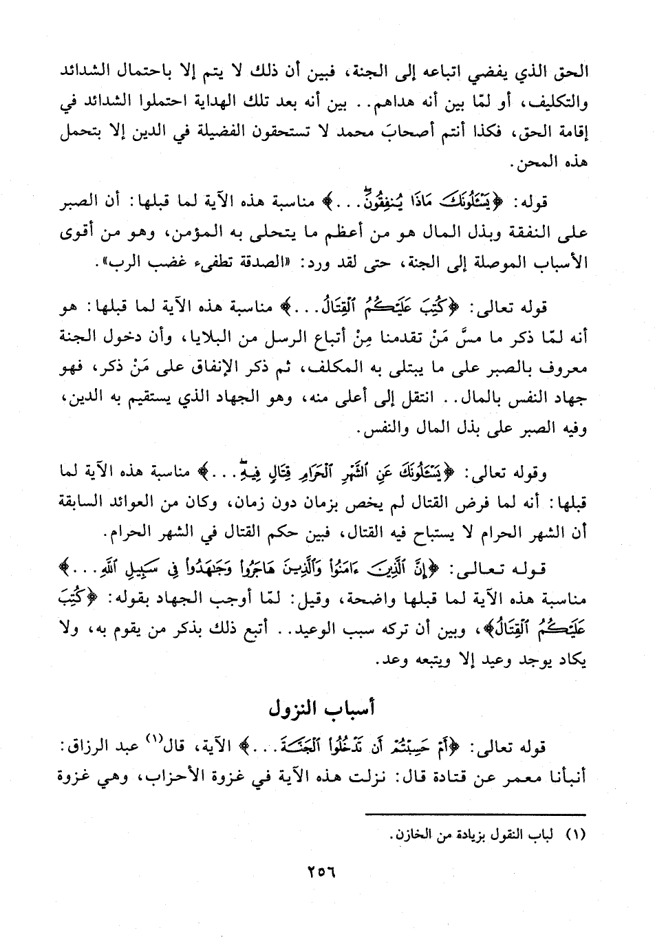 قوله تعالى: {كُتِبَ عَلَيْكُمُ الْقِتَالُ ...} مناسبة هذه الآية لما قبلها: هو أنه لمّا ذكر ما مسَّ مَنْ تقدمنا مِنْ أتباع الرسل من البلايا، وأن دخول الجنة معروف بالصبر على ما يبتلى به المكلف، ثم ذكر الإنفاق على مَنْ ذكر، فهو جهاد النفس بالمال .. انتقل إلى أعلى منه، وهو الجهاد الذي يستقيم به الدين، وفيه الصبر على بذل المال والنفس.