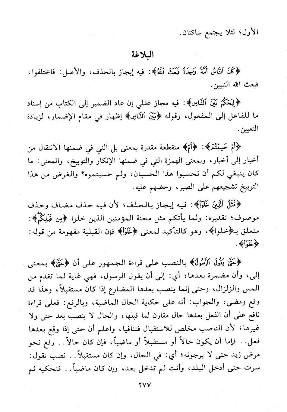 {حَتَّى يَقُولَ الرَّسُولُ} بالنصب على قراءة الجمهور على أن {حَتَّى} بمعنى إلى، وأن مضمرة بعدها؛ أي: إلى أن يقول الرسول، فهي غاية لما تقدم من المس والزلزال، وحتى إنما ينصب بعدها المضارع إذا كان مستقبلًا، وهذا قد وقع ومضى، والجواب: أنه على حكاية الحال الماضية، وبالرفع: فعلى قراءة نافع على أن الفعل بعدها حال مقارن لما قبلها، والحال لا ينصب بعد حتى ولا غيرها؛ لأن الناصب مخلص للاستقبال فتنافيا، واعلم أن حتى إذا وقع بعدها فعل .. فإما أن يكون حالًا أو مستقبلًا أو ماضيًا، فإن كان حالًا .. رفع نحو مرض زيد حتى لا يرجونه؛ أي: في الحال، وإن كان مستقبلًا .. نصب تقول: سرت حتى أدخل البلد، وأنت لم تدخل بعد، وإن كان ماضيًا .. فتحكيه ثم