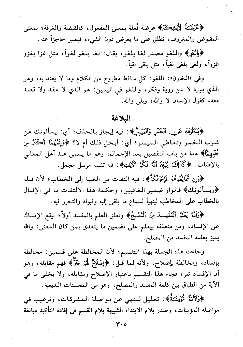 وفي "الخازن": اللغو: كل ساقط مطروح من الكلام وما لا يعتد به، وهو الذي يورد لا عن روية وفكر، واللغو في اليمين: هو الذي لا عقد ولا قصد معه، كقول الإنسان لا والله، وبلى والله.