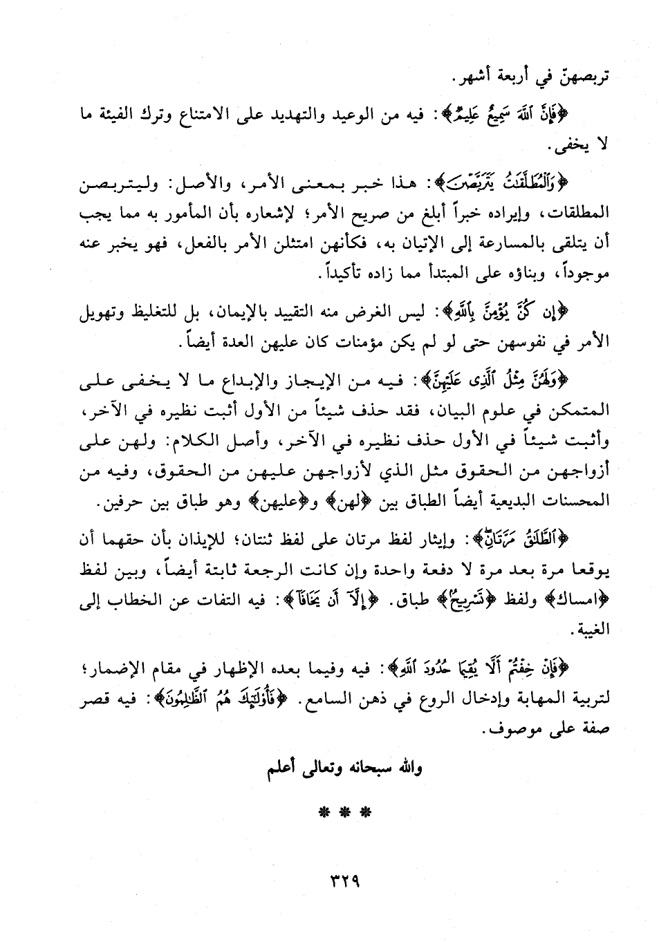 {الطَّلَاقُ مَرَّتَانِ}: وإيثار لفظ مرتان على لفظ ثنتان؛ للإيذان بأن حقهما أن يوقعا مرة بعد مرة لا دفعة واحدة وإن أنت الرجعة ثابتة أيضًا، وبين لفظ {إمساك} ولفظ {تَسْرِيحٌ} طباق. {إِلَّا أَنْ يَخَافَا}: فيه التفات عن الخطاب إلى الغيبة.