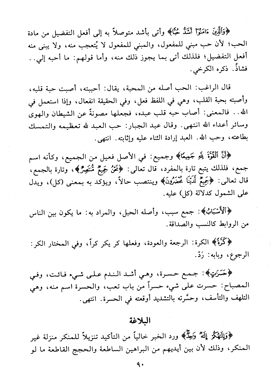 قال الراغب: الحب أصله من المحبة، يقال: أحببته، أصبت حبة قلبه، وأصبته بحبة القلب، وهي في اللفظ فعل، وفي الحقيقة انفعال، وإذا استعمل في الله .. فالمعنى: أصاب حبه قلب عبده، فجعلها مصونةً عن الشيطان والهوى وسائر أعداء الله انتهى. وقال عبد الجبار: حب العبد لله تعظيمه والتمسك بطاعته، وحب الله. العبد إرادة الثناء عليه وإثابته. انتهى.