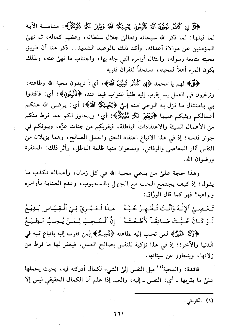 31 - {قُلْ إِنْ كُنْتُمْ تُحِبُّونَ اللَّهَ فَاتَّبِعُونِي يُحْبِبْكُمُ اللَّهُ وَيَغْفِرْ لَكُمْ ذُنُوبَكُمْ}: مناسبة الآية لما قبلها: لما ذكر الله سبحانه وتعالى جلال سلطانه، وعظيم كماله، ثم نهى المؤمنين عن موالاة أعدائه، وأكد ذلك بالوعيد الشديد .. ذكر هنا أن طريق محبته متابعة رسوله، وامتثال أوامره التي جاء بها، واجتناب ما نهى عنه، وبذلك يكون المرء أهلًا لمحبته، مستحقًا لغفران ذنوبه.