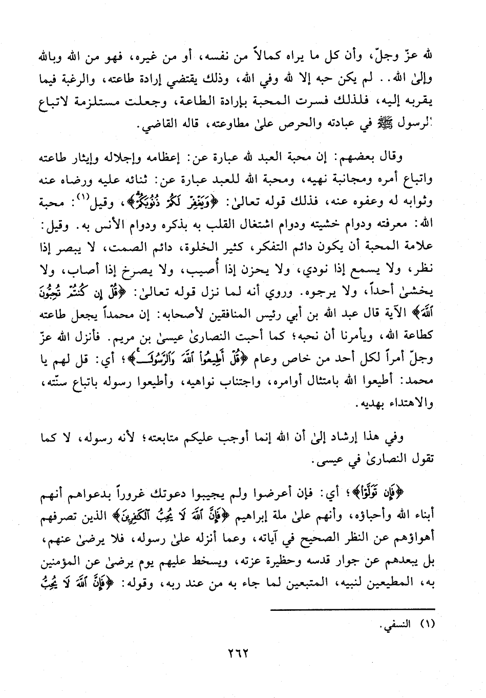 لله عَزَّ وَجلَّ، وأن كل ما يراه كمالًا من نفسه، أو من غيره، فهو من الله وبالله وإلى الله .. لم يكن حبه إلا لله وفي الله، وذلك يقتضي إرادة طاعته، والرغبة فيما يقربه إليه، فلذلك فسرت المحبة بإرادة الطاعة، وجعلت مستلزمة لاتباع الرسول - صلى الله عليه وسلم - في عبادته والحرص على مطاوعته، قاله القاضي.