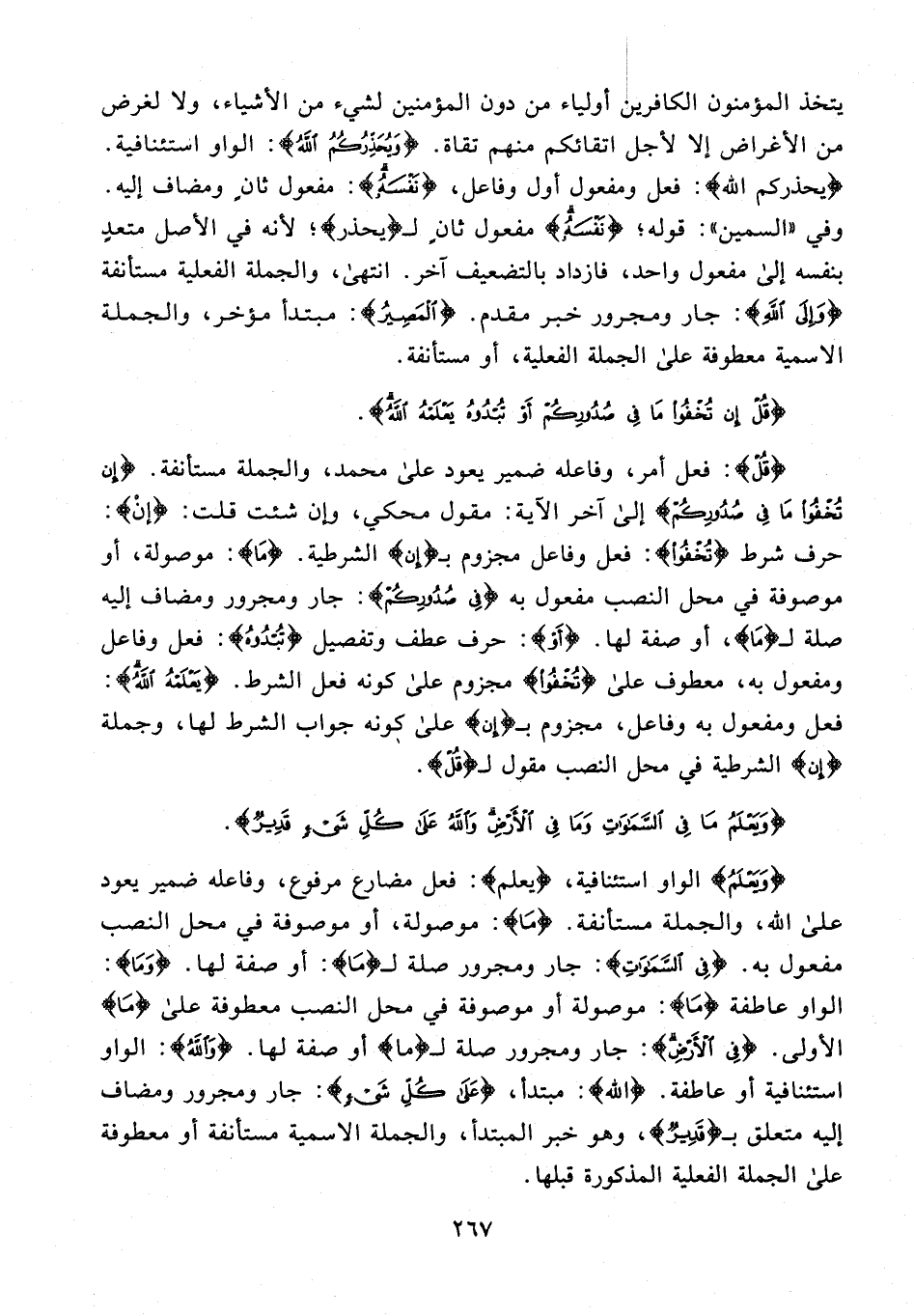 {قُلْ}: فعل أمر، وفاعله ضمير يعود على محمَّد، والجملة مستأنفة. {إِنْ تُخْفُوا مَا فِي صُدُورِكُمْ} إلى آخر الآية: مقول محكي، وإن شئت قلت: {إن}: حرف شرط {تُخْفُوا}: فعل وفاعل مجزوم بـ {إِن} الشرطية. {مَا}: موصولة، أو موصوفة في محل النصب مفعول به {فِي صُدُورِكُمْ}: جار ومجرور ومضاف إليه صلة لـ {مَا}، أو صفة لها. {أَوْ}: حرف عطف وتفصيل {تُبْدُوهُ}: فعل وفاعل ومفعول به، معطوف على {تُخْفُوا} مجزوم على كونه فعل الشرط. {يَعْلَمْهُ اللَّهُ}: فعل ومفعول به وفاعل، مجزوم بـ {إِن} على كونه جواب الشرط لها، وجملة {إن} الشرطية في محل النصب مقول لـ {قُلْ}.