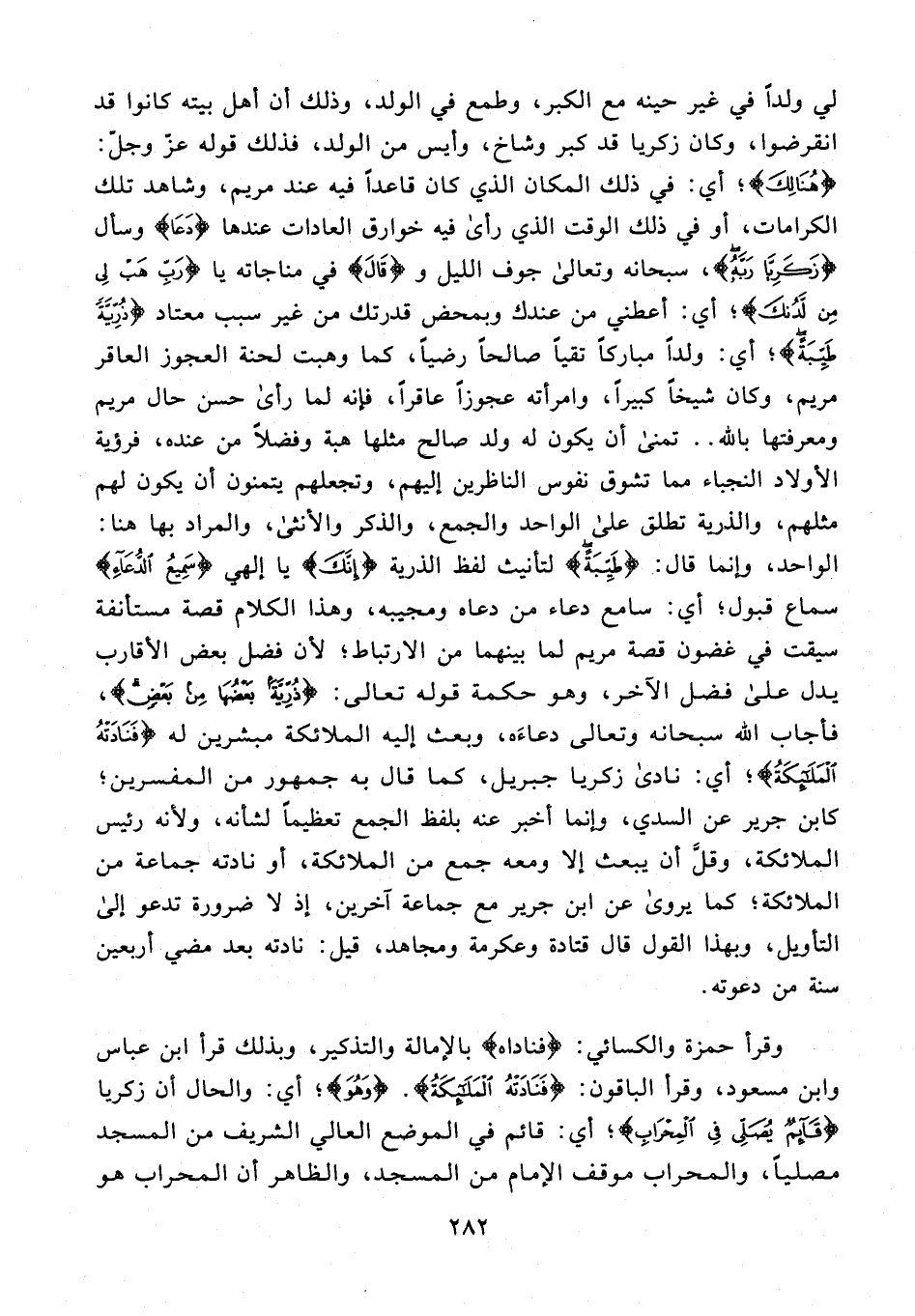 39 - {فَنَادَتْهُ الْمَلَائِكَةُ وَهُوَ قَائِمٌ يُصَلِّي فِي الْمِحْرَابِ أَنَّ اللَّهَ يُبَشِّرُكَ بِيَحْيَى مُصَدِّقًا بِكَلِمَةٍ مِنَ اللَّهِ وَسَيِّدًا وَحَصُورًا وَنَبِيًّا مِنَ الصَّالِحِينَ (39)} [آل عمران: 39] {فَنَادَتْهُ الْمَلَائِكَةُ}؛ أي: نادى زكريا جبريل، كما قال به جمهور من المفسرين؛ كابن جرير عن السدي، وإنما أخبر عنه بلفظ الجمع تعظيمًا لشأنه، ولأنه رئيس الملائكة، وقلَّ أن يبعث إلا ومعه جمع من الملائكة، أو نادته جماعة من الملائكة؛ كما يروى عن ابن جرير مع جماعة آخرين، إذ لا ضرورة تدعو إلى التأويل، وبهذا القول قال قتادة وعكرمة ومجاهد، قيل: نادته بعد مضي أربعين سنة من دعوته.