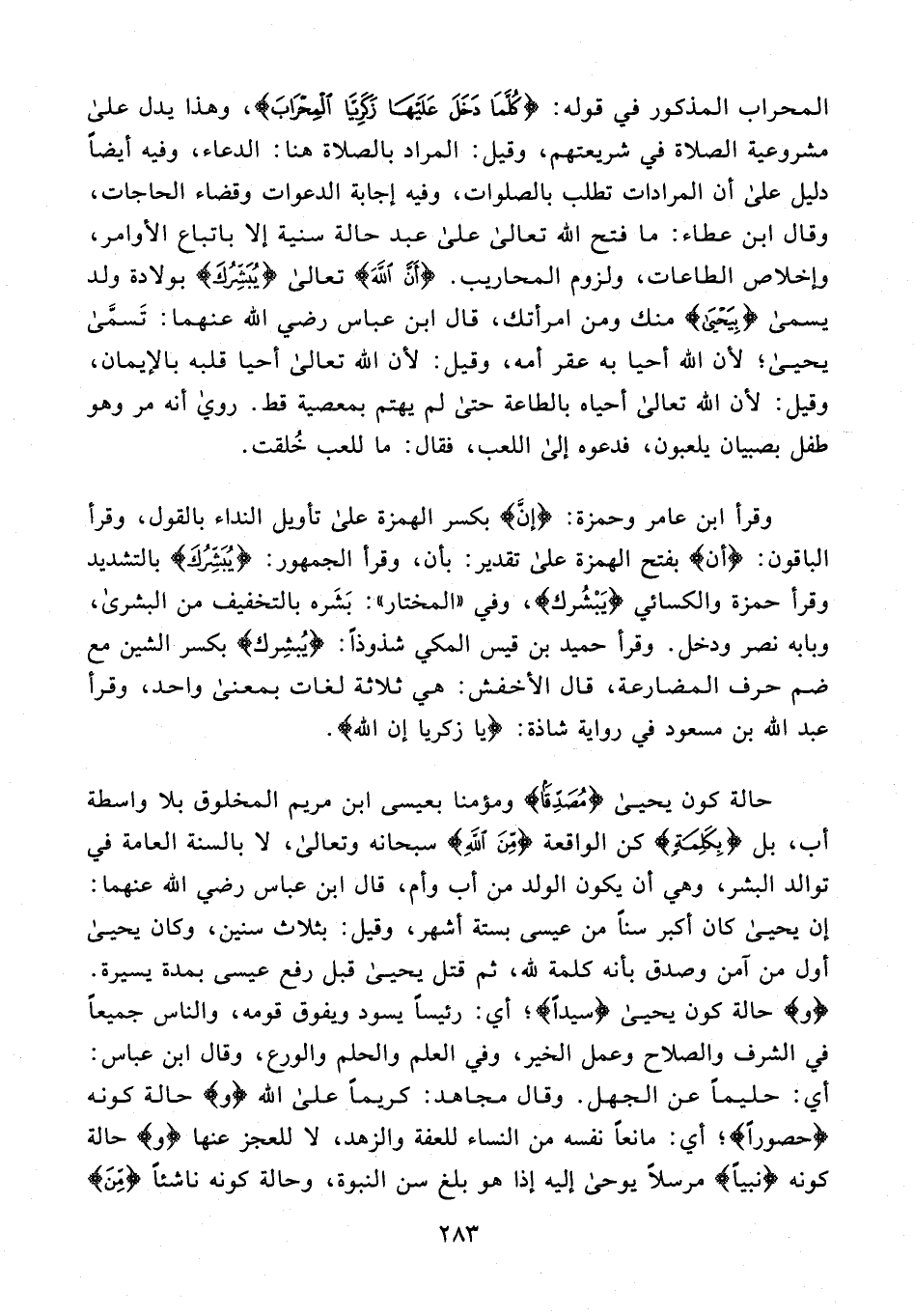 وقرأ ابن عامر وحمزة: {إنَّ} بكسر الهمزة على تأويل النداء بالقول، وقرأ الباقون: {أن} بفتح الهمزة على تقدير: بأن، وقرأ الجمهور: {يُبَشِركَ} بالتشديد وقرأ حمزة والكسائي {يَبْشُرك}، وفي "المختار": بَشَره بالتخفيف من البشرى، وبابه نصر ودخل. وقرأ حميد بن قيس المكي شذوذًا: {يُبشِرك} بكسر الشين مع ضم حرف المضارعة، قال الأخفش: هي ثلاثة لغات بمعنى واحد، وقرأ عبد الله بن مسعود في رواية شاذة: {يا زكريا إن الله}.