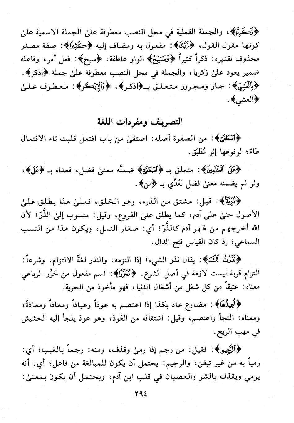 {نَذَرْتُ لَكَ}: يقال نذر الشيء؛ إذا التزمه، والنذر لغةً الالتزام، وشرعًا: التزام قربة ليست لازمة في أصل الشرع. {مُحَرَّرًا}: اسم مفعول من حَرَّر الرباعي معناه: عتيقًا من كل شغل من أشغال الدنيا، فهو مأخوذ من الحرية.