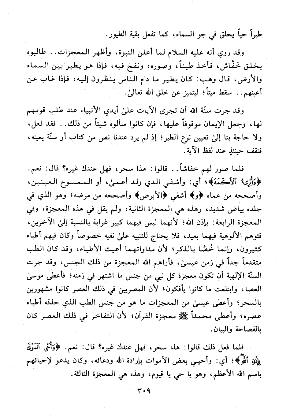 وقد روي أنه عليه السلام لما أعلن النبوة، وأظهر المعجزات .. طالبوه بخلق خَفَّاش، فأخذ طينًا، وصوره، ونفخ فيه، فإذا هو يطير بين السماء والأرض، قال وهب: كان يطير ما دام الناس ينظرون إليه، فإذا غاب عن أعينهم .. سقط ميتًا؛ ليتميز عن خلق الله تعالى.