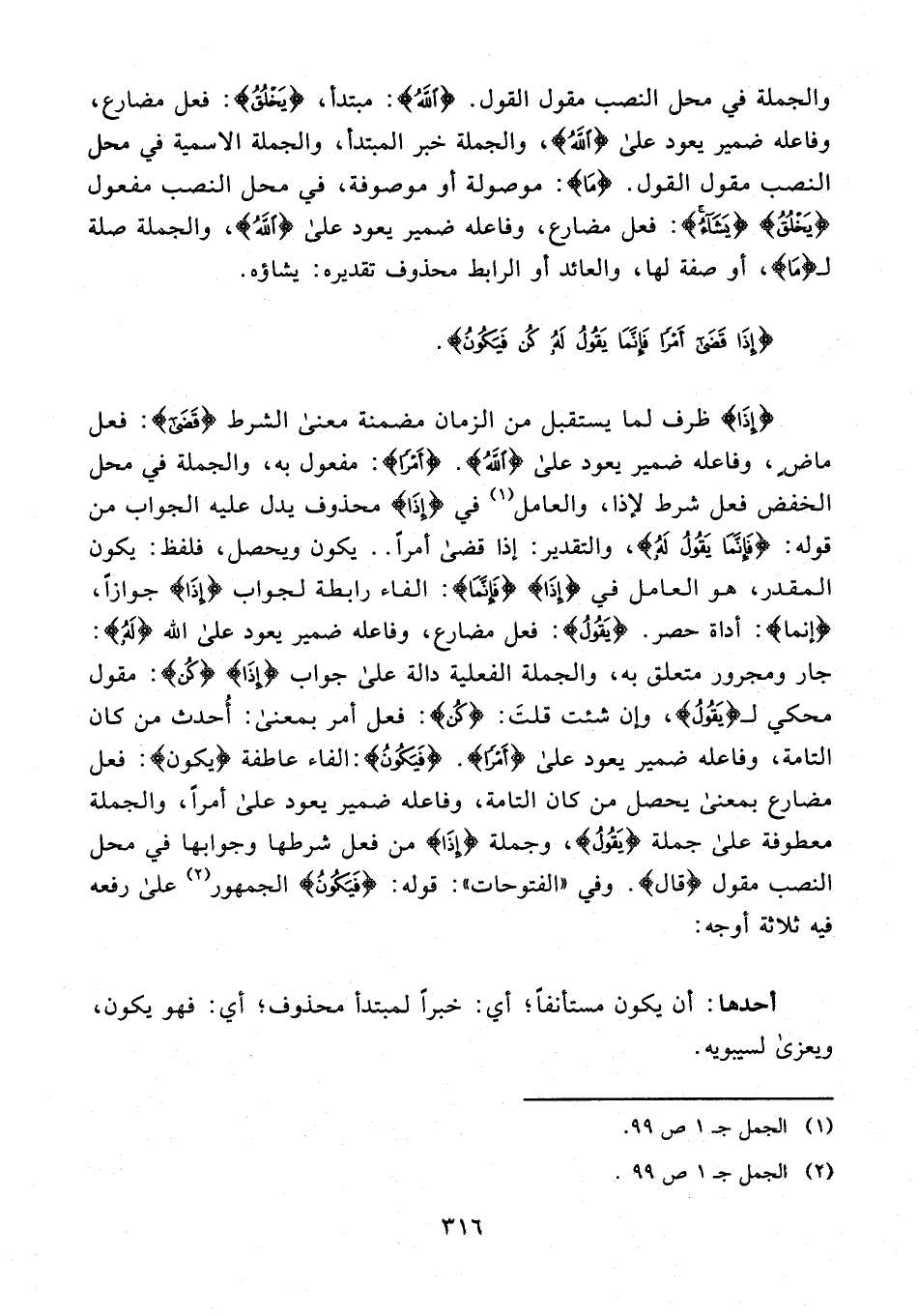 {إِذَا قَضَى أَمْرًا فَإِنَّمَا يَقُولُ لَهُ كُنْ فَيَكُونُ}.