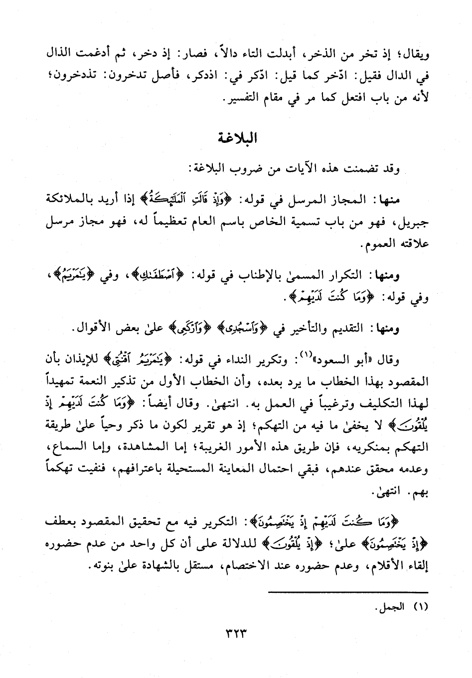 ومنها: التكرار المسمى بالإطناب في قوله: {اصْطَفَاكِ}، وفي {يَا مَرْيَمُ}، وفي قوله: {وَمَا كُنْتَ لَدَيْهِمْ}.