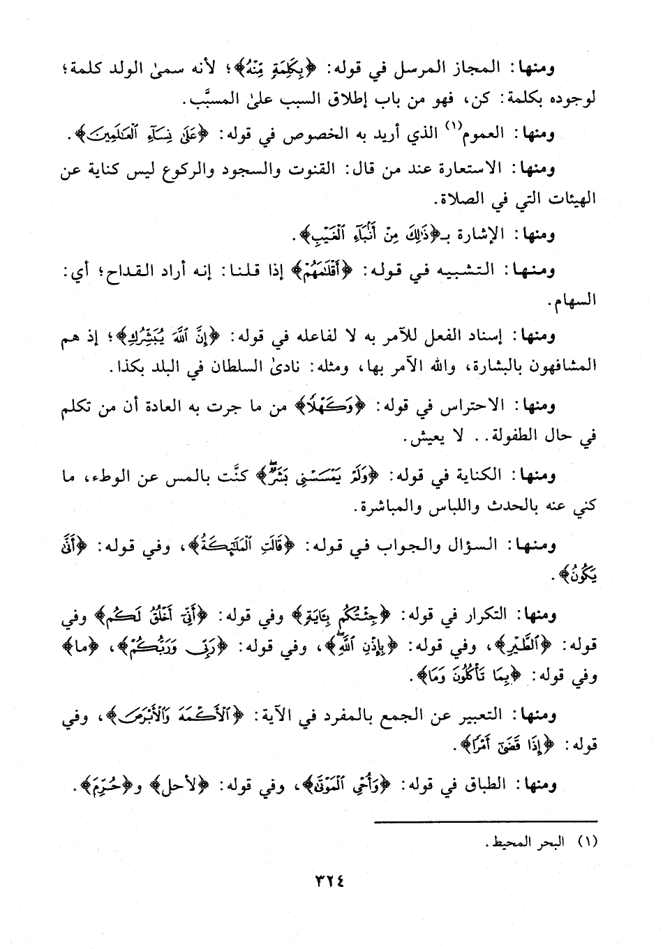 ومنها: المجاز المرسل في قوله: {بِكَلِمَةٍ مِنْهُ}؛ لأنه سمى الولد كلمة؛ لوجوده بكلمة: كن، فهو من باب إطلاق السبب على المسبَّب.