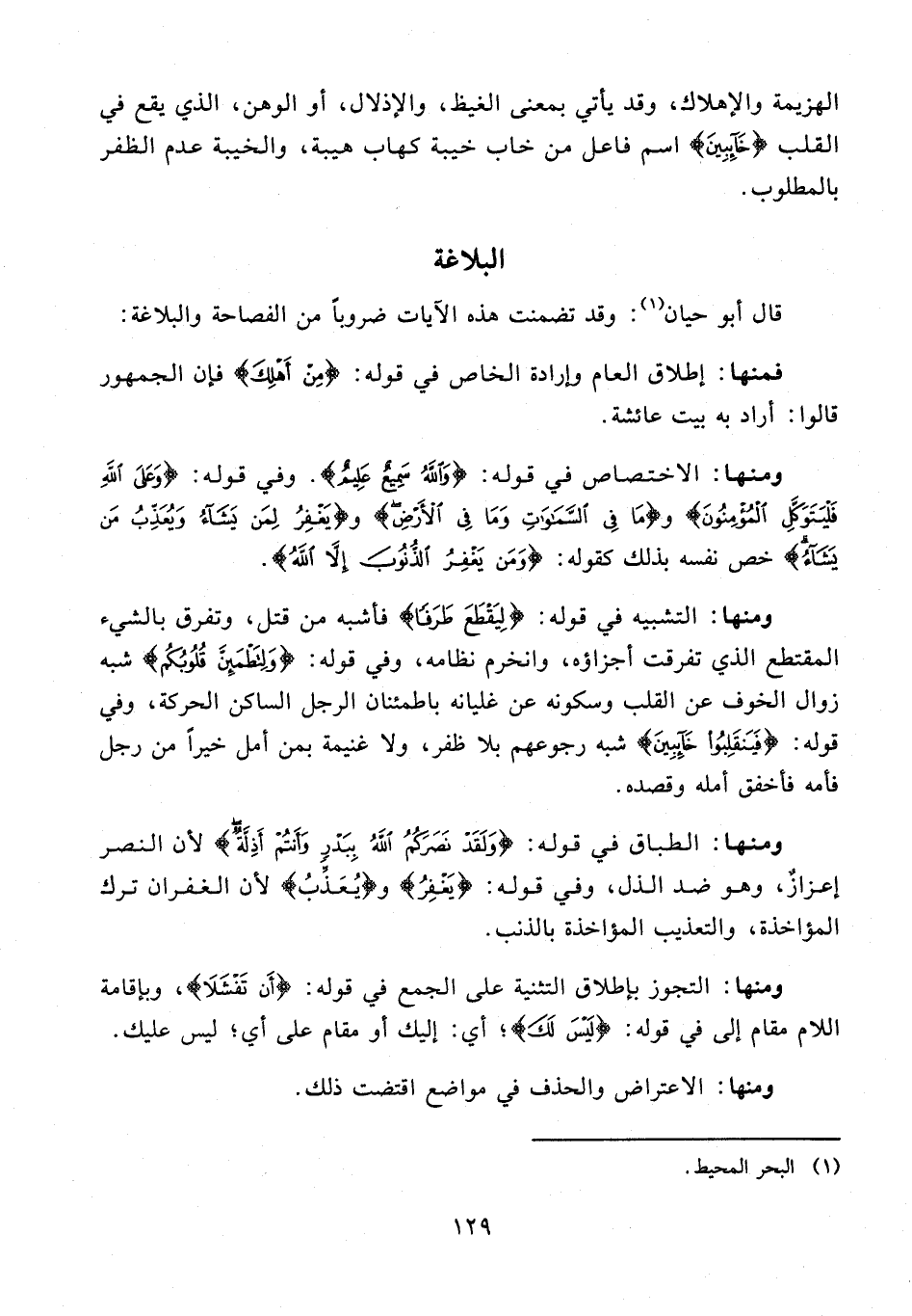 ومنها: التجوز بإطلاق التثنية على الجمع في قوله: {أَن تَفْشَلَا}، وبإقامة اللام مقام إلى في قوله: {لَيْسَ لَكَ}؛ أي: إليك أو مقام على أي؛ ليس عليك.
