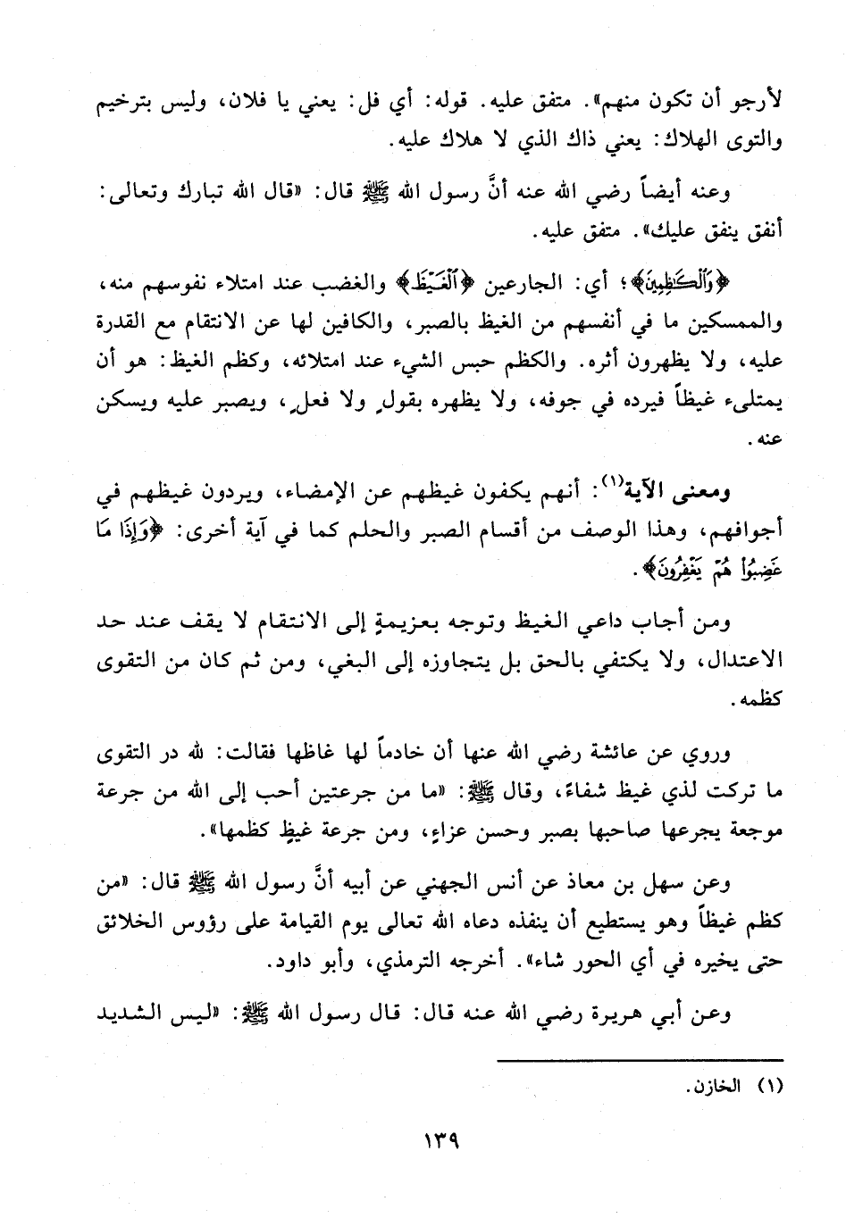 وعن سهل بن معاذ عن أنس الجهني عن أبيه أنَّ رسول الله - صلى الله عليه وسلم - قال: "من كظم غيظًا وهو يستطيع أن ينفذه دعاه الله تعالى يوم القيامة على رؤوس الخلائق حتى يخيره في أي الحور شاء". أخرجه الترمذي، وأبو داود.