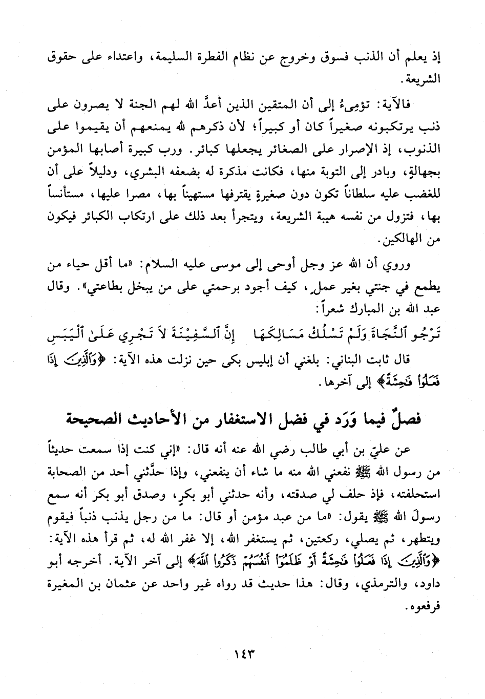 فصلٌ فيما وَرَد في فضل الاستغفار من الأحاديث الصحيحة
