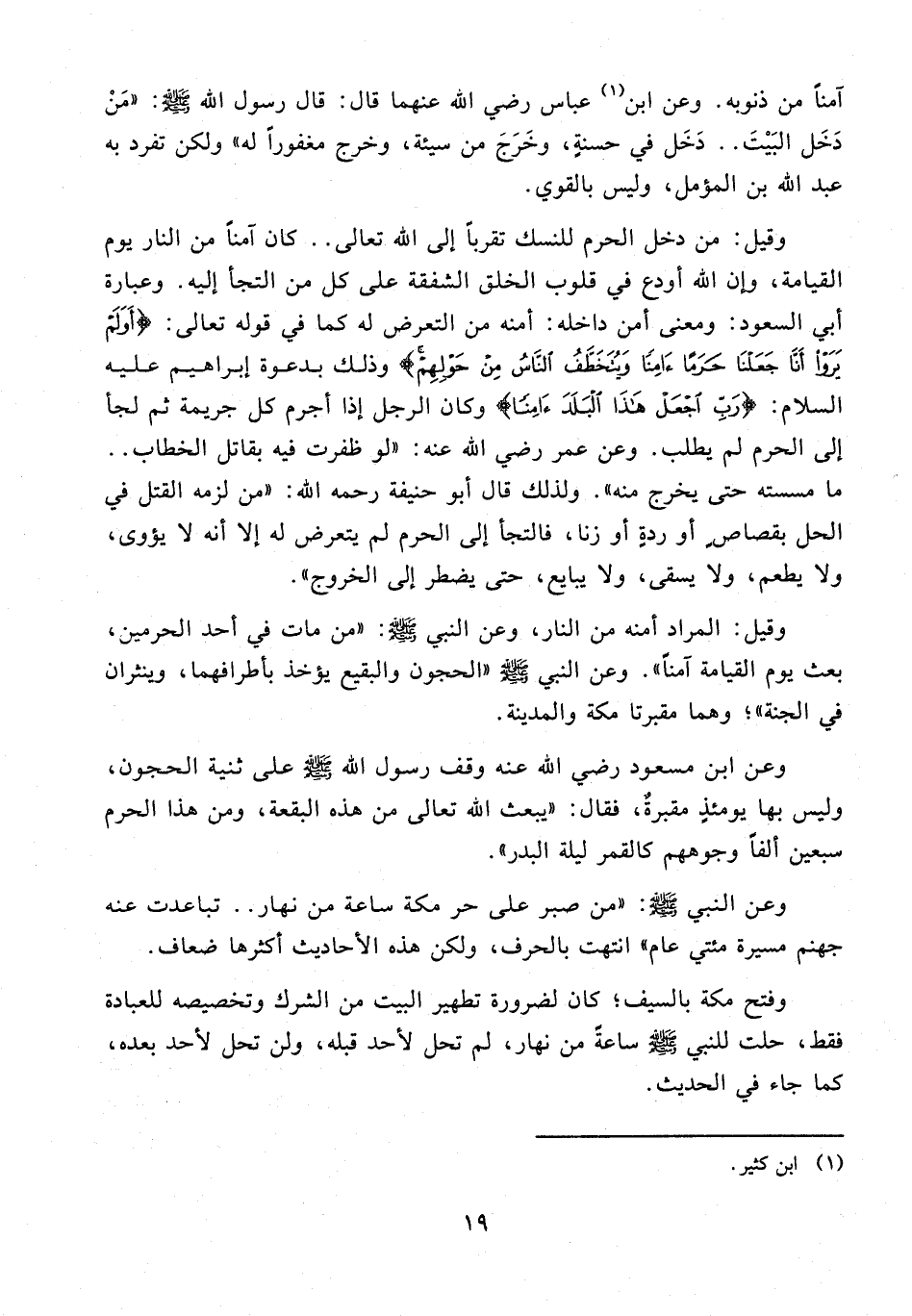 وعن النبي - صلى الله عليه وسلم -: "من صبر على حر مكة ساعة من نهار .. تباعدت عنه جهنم مسيرة مئتي عام" انتهت بالحرف، ولكن هذه الأحاديث أكثرها ضعاف.
