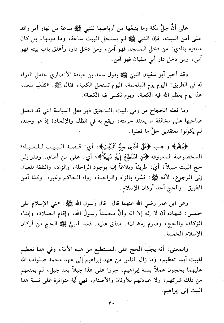 والمعنى: أنه يجب الحج على المستطيع من هذه الأمة، وفي هذا تعظيم للبيت أيما تعظيم، وما زال الناس من عهد إبراهيم إلى عهد محمد صلوات الله عليهما يحجون عملًا بسنة إبراهيم، جروا على هذا جيلًا بعد جيل، لم يمنعهم من ذلك شركهم، ولا عبادتهم للأوثان والأصنام، فهي آية متواترة على نسبة هذا البيت إلى إبراهيم.